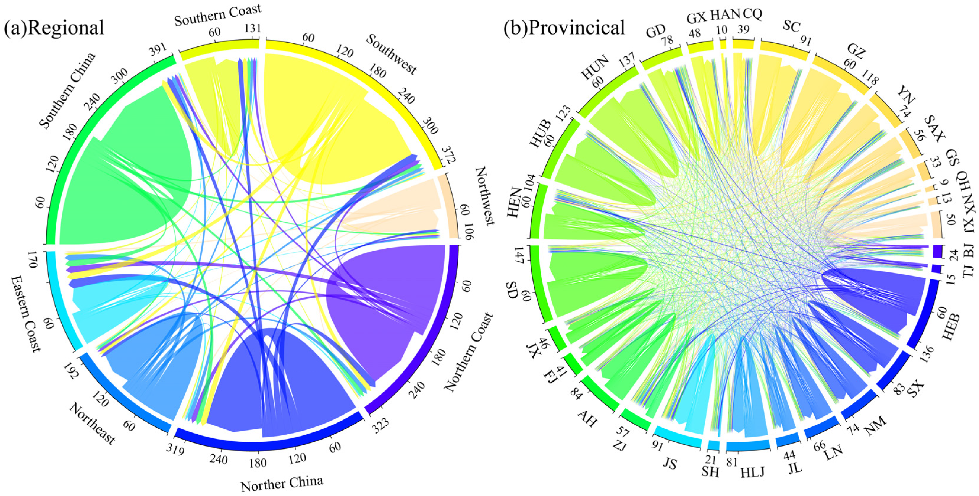 Table 2. Top 30 critical paths of BC emissions from specific provinces to other provinces.