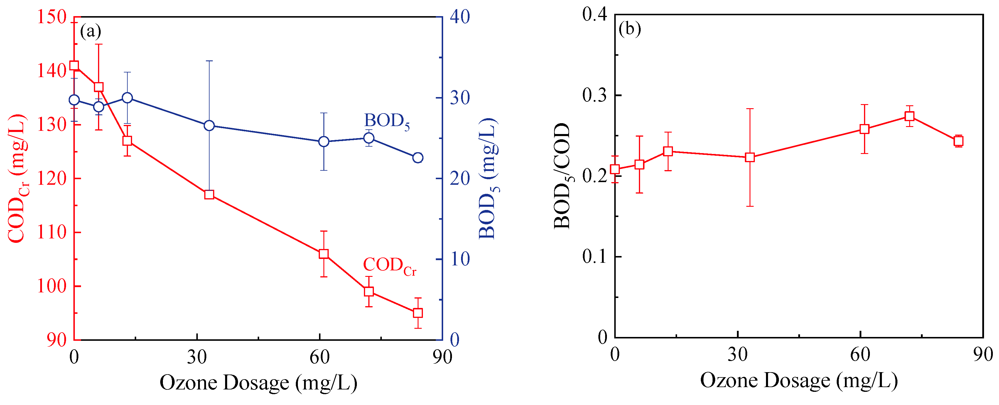 - Wang, F.; Huang, Y.; Zhuo, X.; He, C.; Li, Q. Molecular-level transformation characteristics of refractory organics in landfill leachate during ozonation treatment. Sci. Total Environ. 2020, 749, 141558. [Google Scholar] [CrossRef]