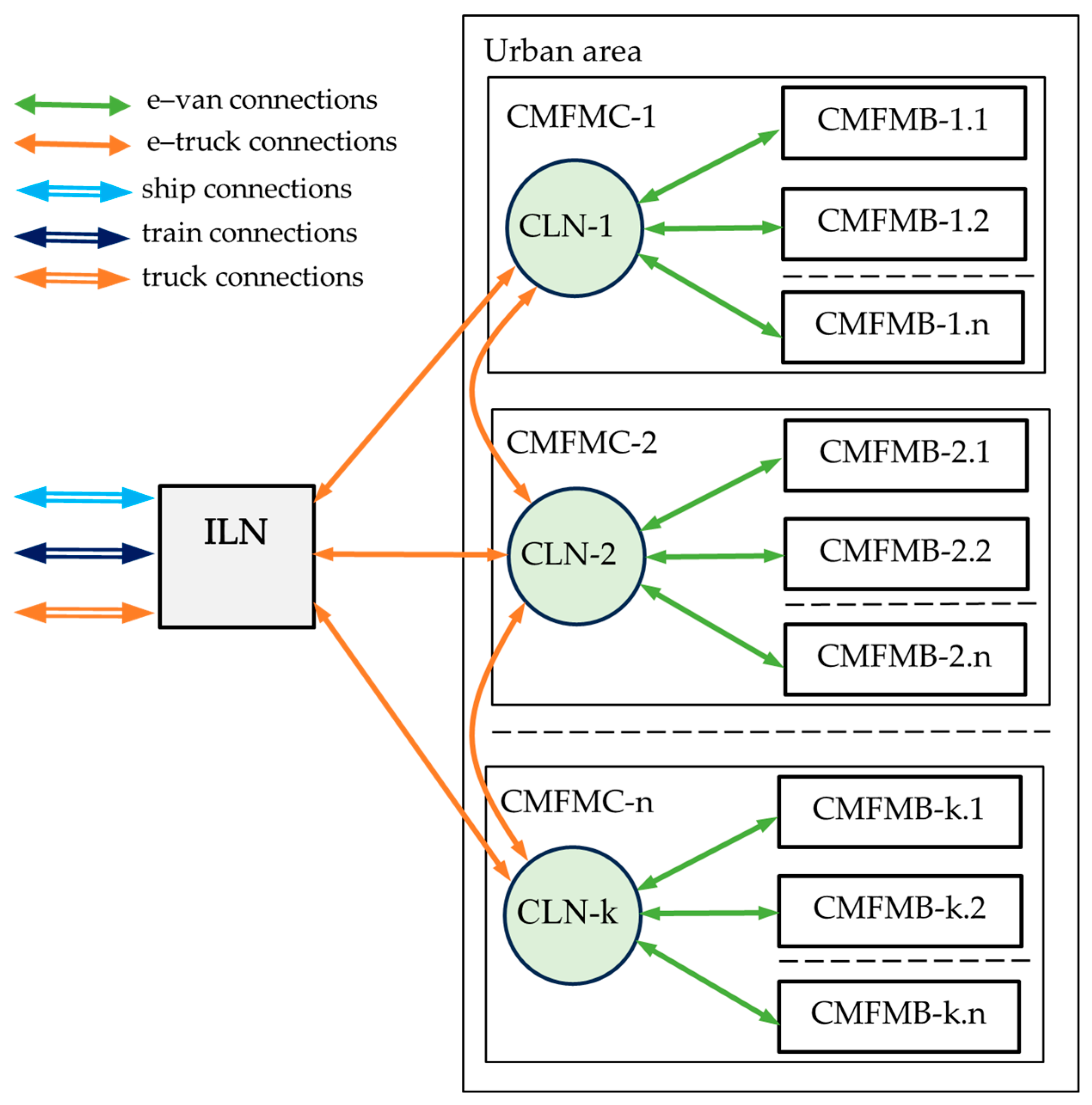 - Dudek, T.; Dzhuguryan, T.; Wiśnicki, B.; Pędziwiatr, K. Smart Sustainable Production and Distribution Network Model for City Multi-Floor Manufacturing Clusters. Energies 2022, 15, 488. [Google Scholar] [CrossRef]
