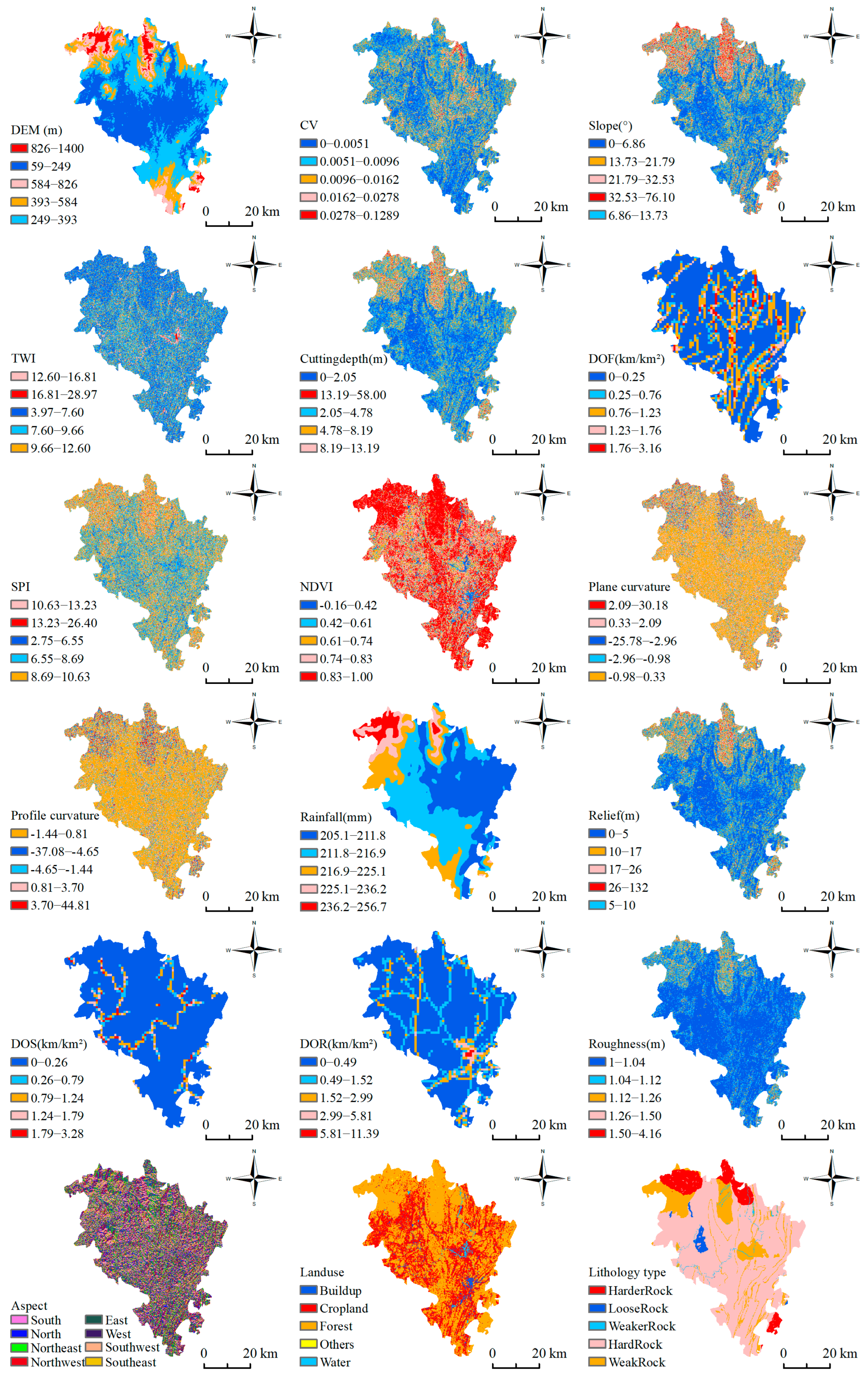 2.4. Landslide Conditioning Factors