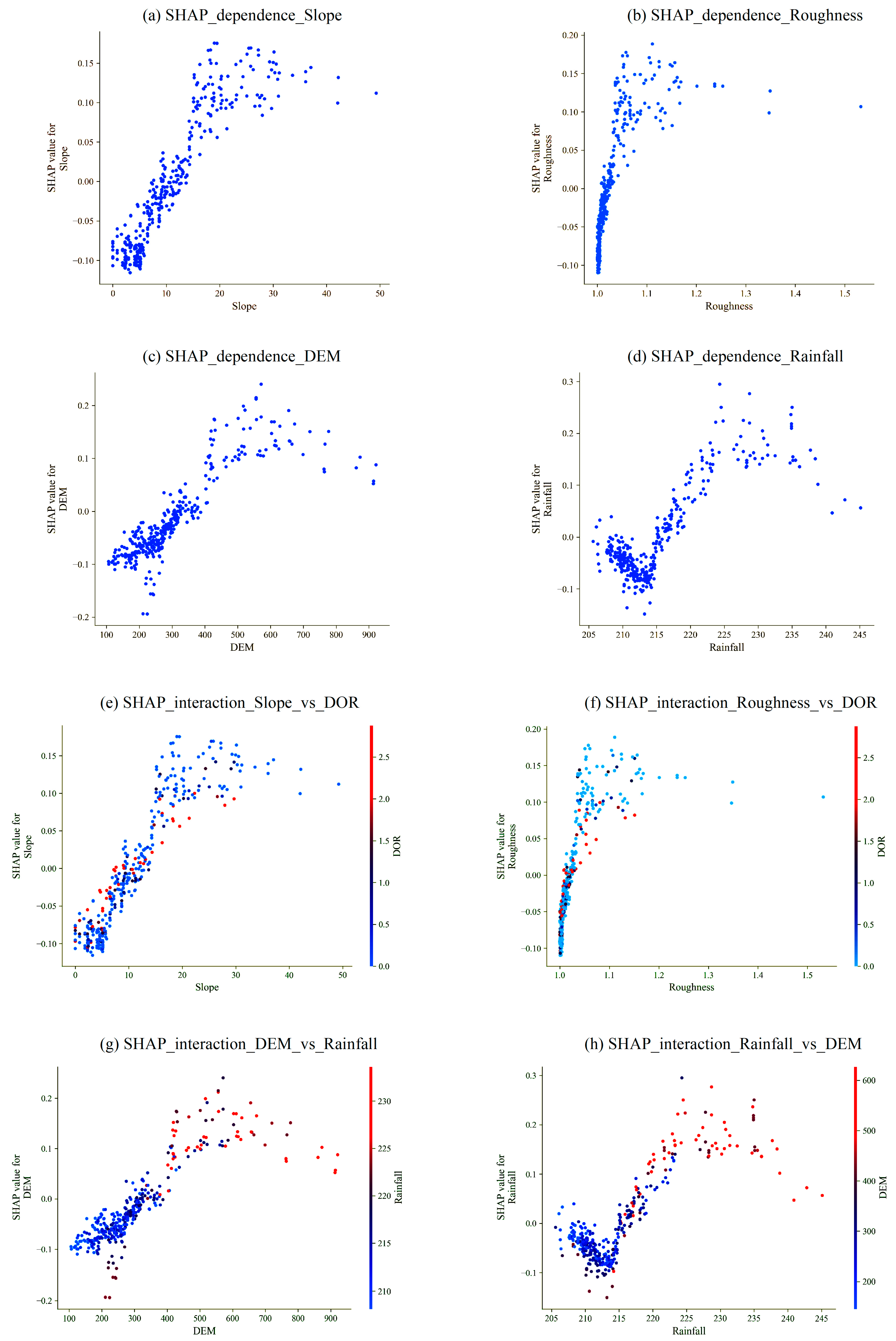 As shown in Figure 2, landslides in Guiyang County are primarily distributed in the relatively high-altitude northern and southern mountainous regions. In addition, the southern area surrounding the county town, which has a higher road density, also experiences a higher frequency of landslides, while the central region, characterized by lower altitude and relatively flat terrain, has fewer landslides.