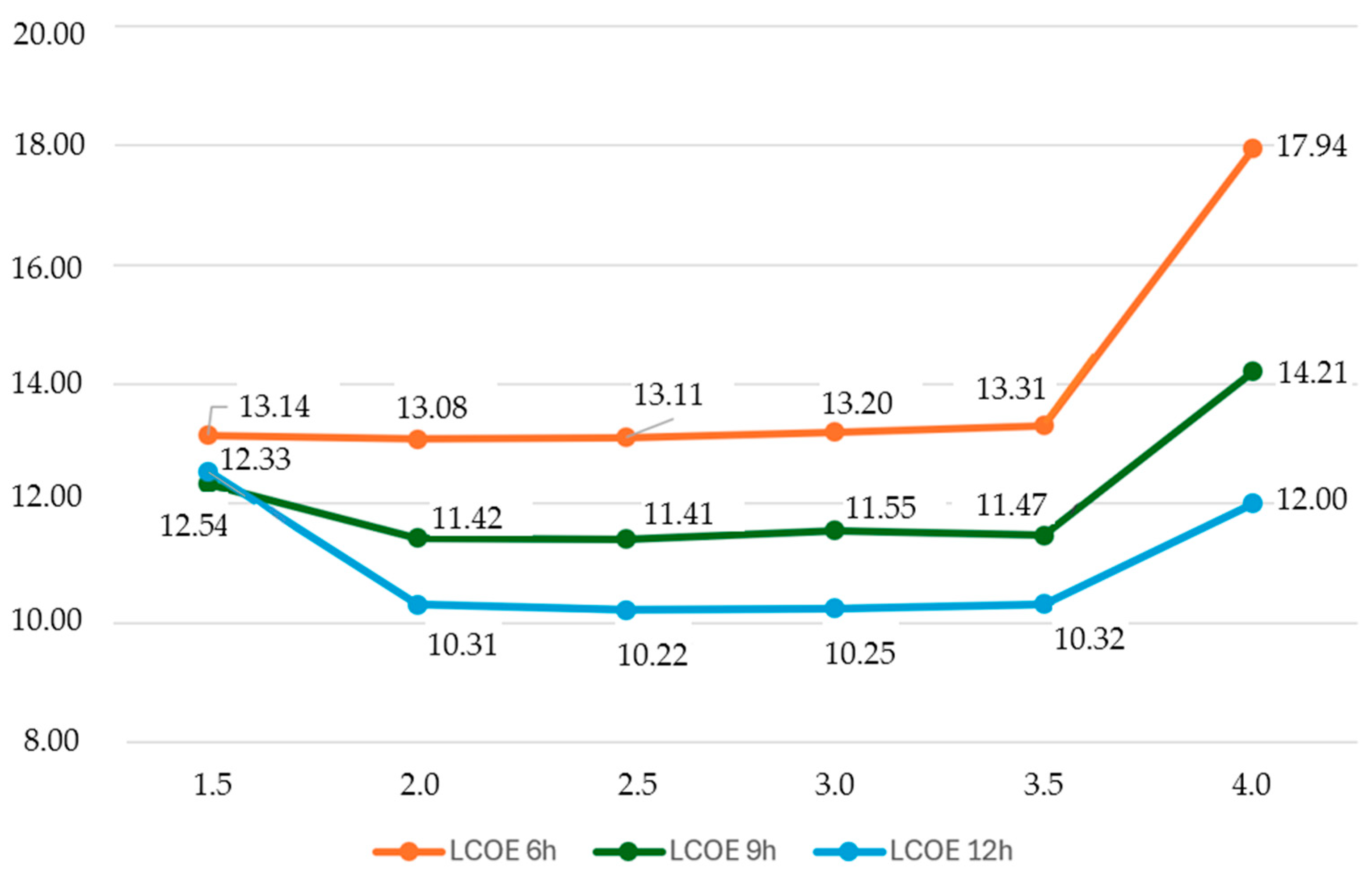 20] the LCOE for solar tower plants ranges from 11.6 to 12.5 ¢/kWh, and for parabolic trough plants from 13.0 to 14.4 ¢/kWh. Higher interest rates significantly increase LCOE, reaching up to 25.9 ¢/kWh in private-sector projects. Therefore, CSP project viability in the country relies heavily on favorable financing conditions and supportive political mechanisms to lower investment risk.
