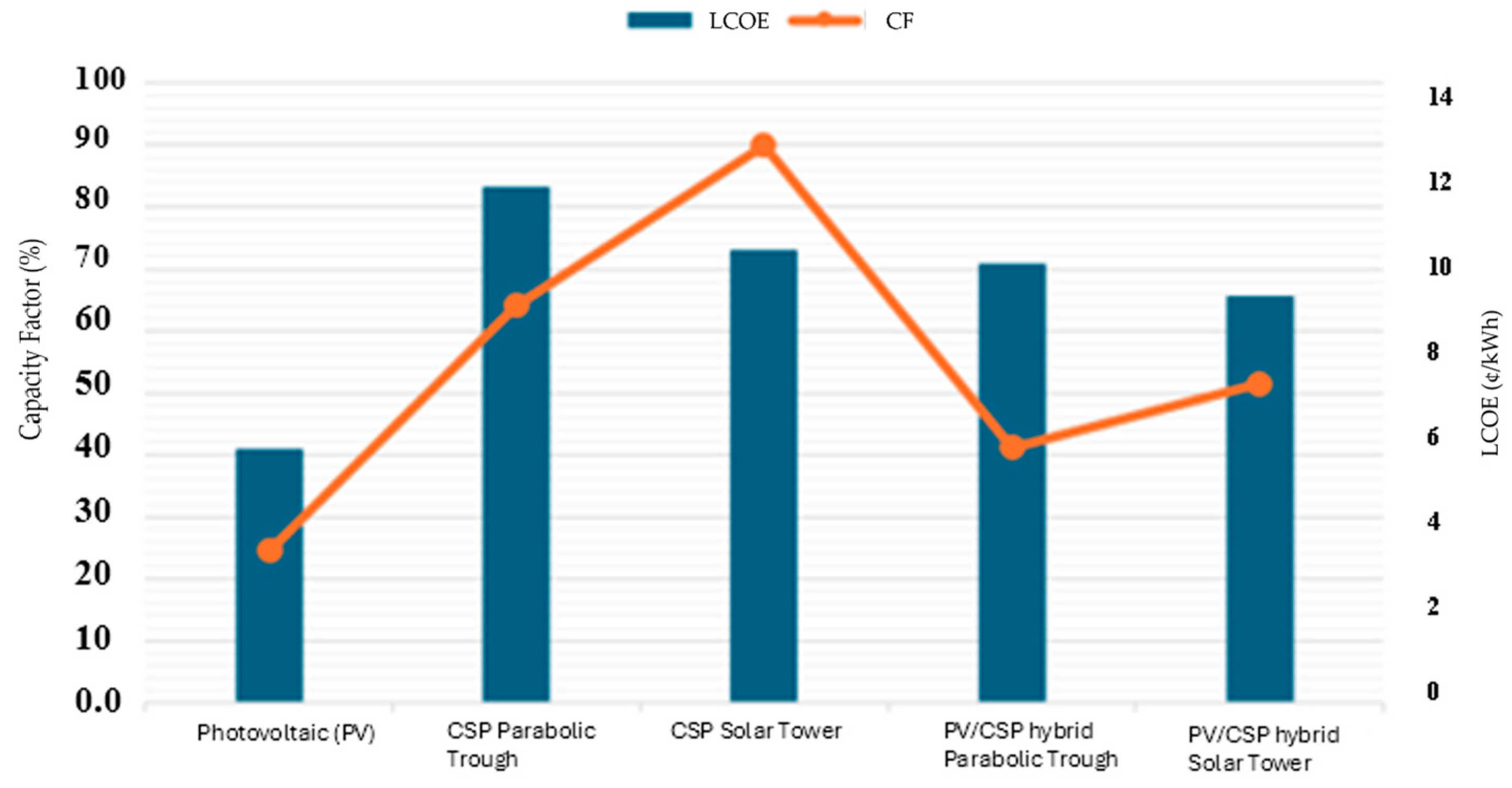 24] emphasize the importance of analyzing hybridization strategies tailored to the specific meteorological conditions of each city. They argue that integrating photovoltaic (PV) systems into concentrated solar power (CSP) plant designs should be considered universally, as this approach can significantly reduce the cost of solar-based baseload energy supply.