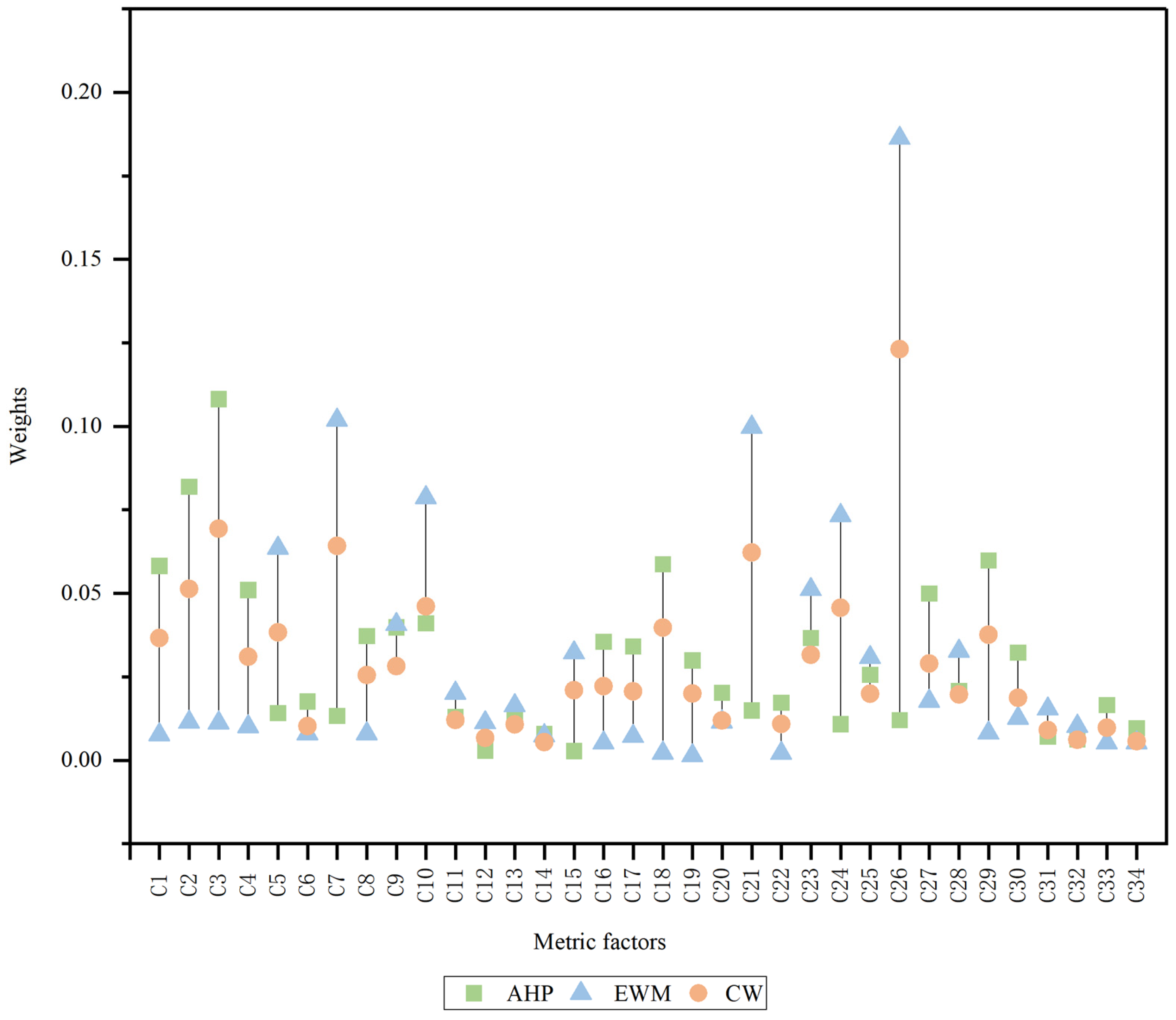 | Metric | AHP | EWM | CW | Metric | AHP | EWM | CW |