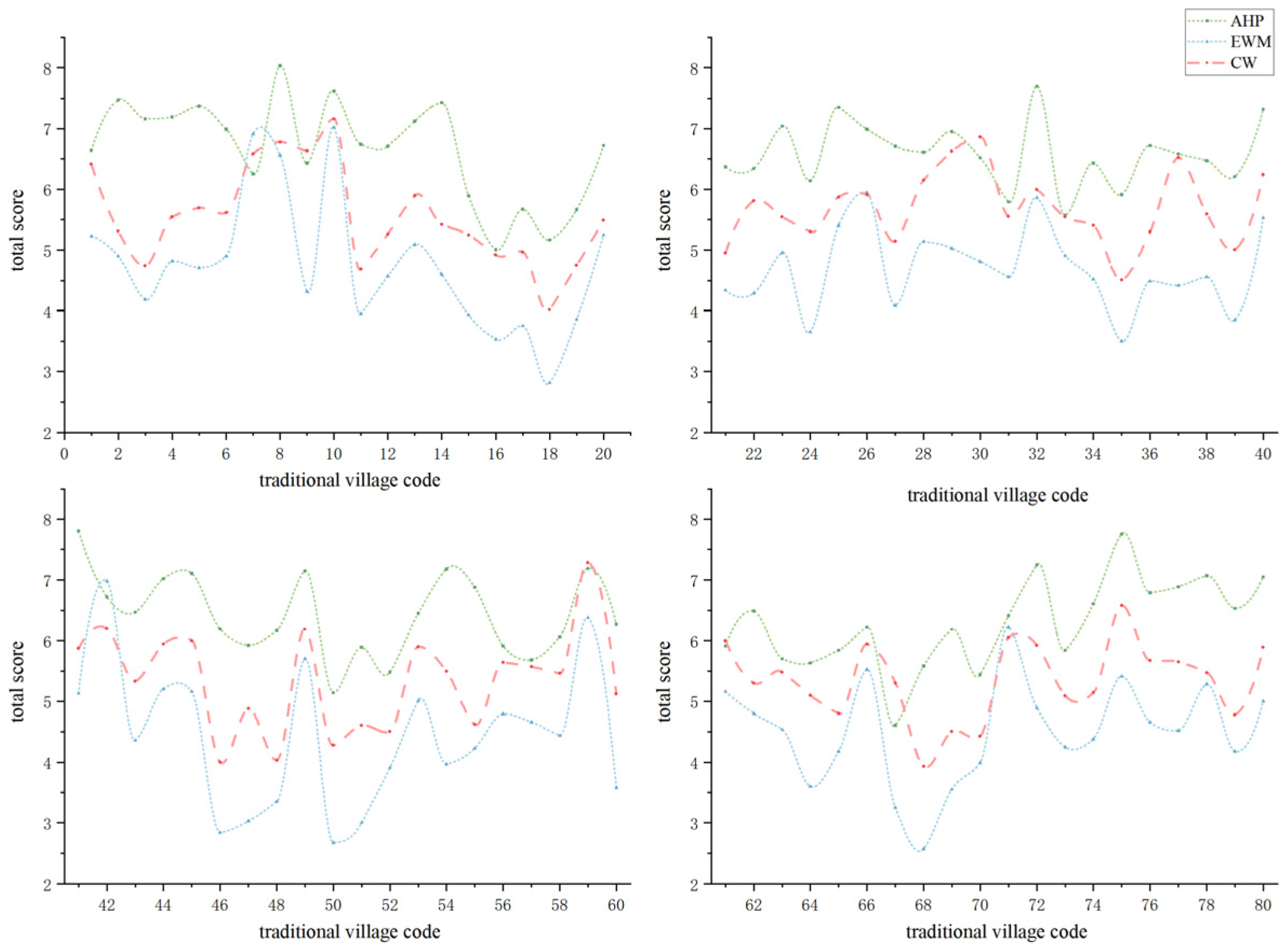 Chicago/Turabian StyleMo, Wei, Shiming Xiao, and Qi Li. 2025. "AHP–Entropy Method for Sustainable Development Potential Evaluation and Rural Revitalization: Evidence from 80 Traditional Villages in Cantonese Cultural Region, China" Sustainability 17, no. 21: 9582. https://doi.org/10.3390/su17219582