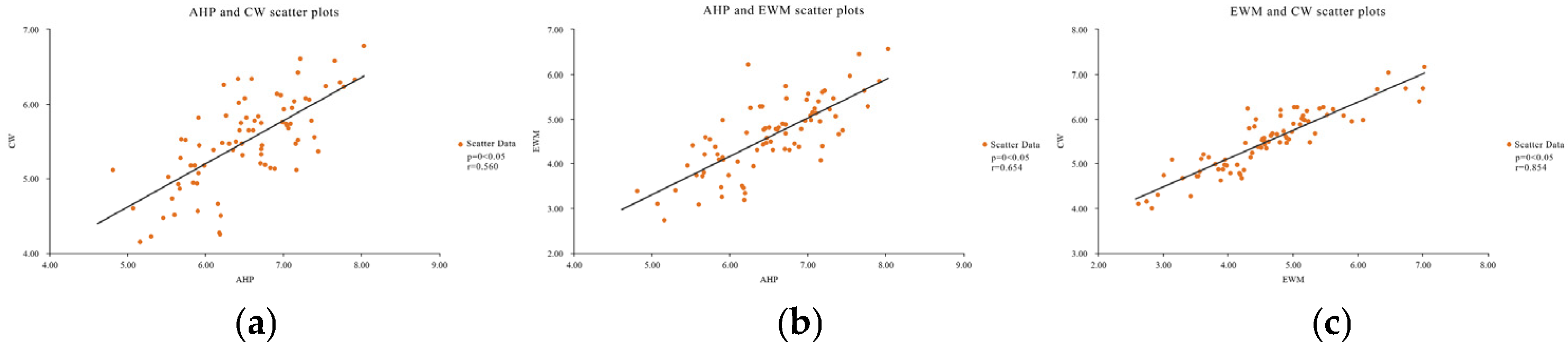 | AHP vs. EWM | 38 | 0.32 | [0.23, 0.41] | <0.001 |