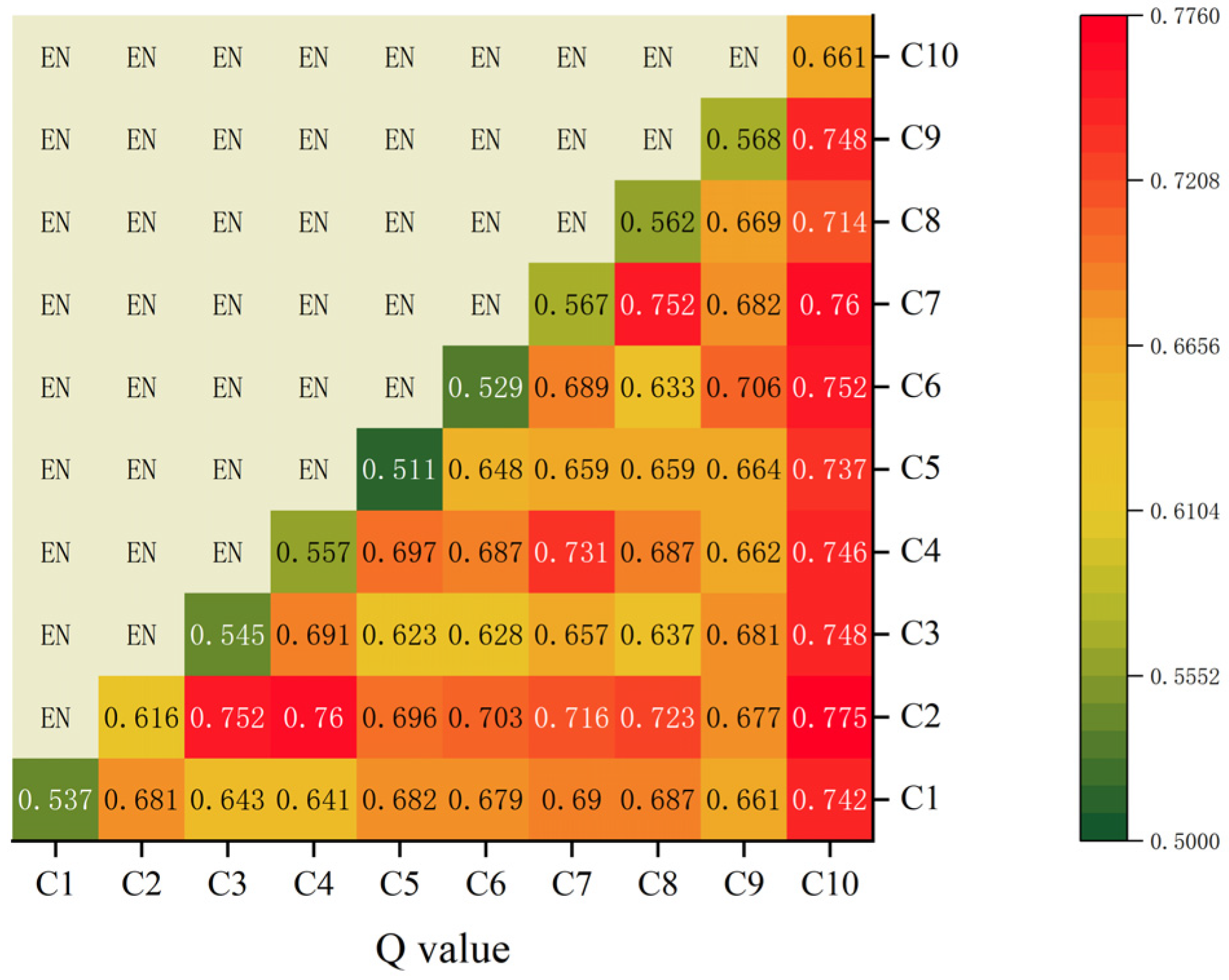 - Conflict Resolution Mechanism: The minimum information entropy principle identifies consensus domains (89% of indicators show <0.05 weight difference), while fuzzy clustering resolves disputed indicators (e.g., C7 “Water Coverage”) [22]. This eliminates the “weight oscillation” seen in studies like Ding et al. (2023), where AHP (weight = 0.40) and EWM (weight = 0.08) assigned conflicting priorities to water temperature, causing misclassification of oligotrophic waters [23].
