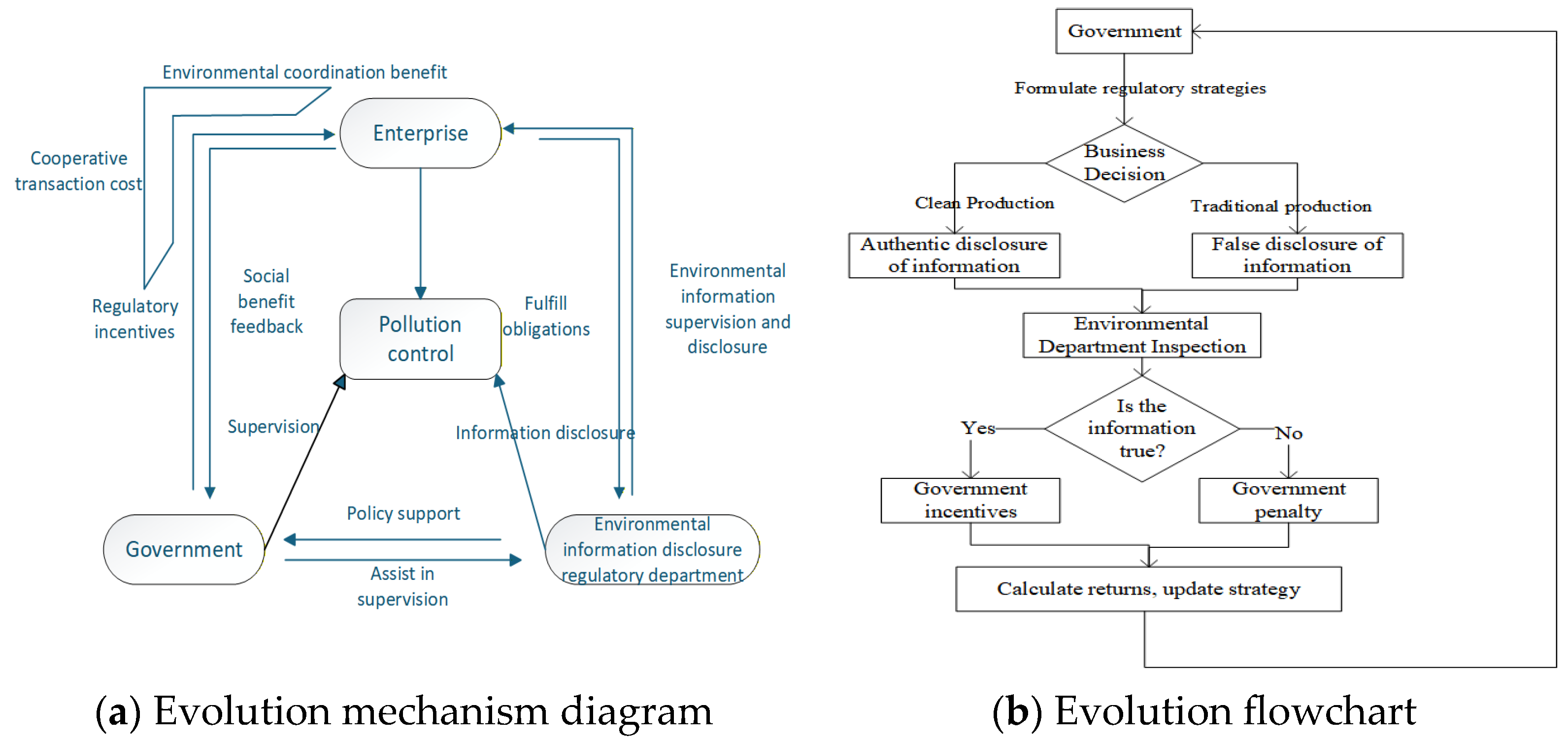 If the production of the enterprise is verified, and the cost of upgrading the technology and equipment of the enterprise’s environmental protection production is higher than the cost of information disclosure by the enterprise according to regulations, then the heavy polluting enterprise will choose the strategy of non-cleaner production. When the income obtained by the regulatory authorities when supervising in accordance with the law and the losses suffered by the regulatory authorities when the regulatory authorities do not supervise in accordance with the law are lower than the supervision costs of the environmental information disclosure regulatory authorities, the environmental regulatory authorities will choose non-legal supervision; When heavy polluting enterprises are not cleaner production and environmental supervision departments are not supervised in accordance with the law, it will not only cause serious environmental pollution, but also seriously damage the general environment of local environmental governance, which is not conducive to the development of local environmental governance, so the local government will tend to increase the fines imposed on enterprises for verifying polluted production and the environmental protection tax (pollutant discharge fee) paid by enterprises for verifying polluted production, so as to promote enterprises to change to cleaner production. At this time the government will choose a stable strategy of strict supervision.