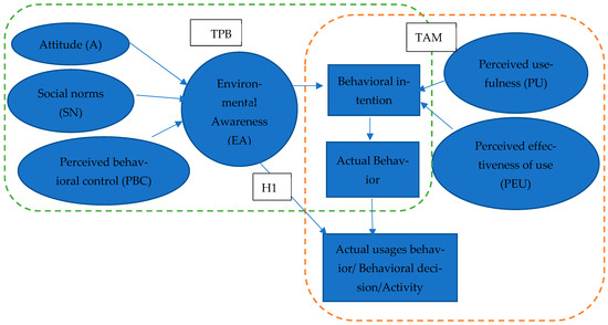 This study examines environmental awareness (EA), captured through environmental knowledge, concerns, and environmental practices (constructs aligned with the components of TPB), to predict the behavioral intention or motivational readiness of informally operated firms. It further extends this enquiry by forecasting behavioral decisions related to technology adoption, drawing on the Technology Acceptance Model (TAM). Accordingly, the central hypothesis of this investigation states that environmental awareness significantly influences firms’ decisions regarding technology adoption. Specifically, higher levels of environmental awareness are expected to strengthen firms’ willingness to adopt environmentally friendly technologies.
