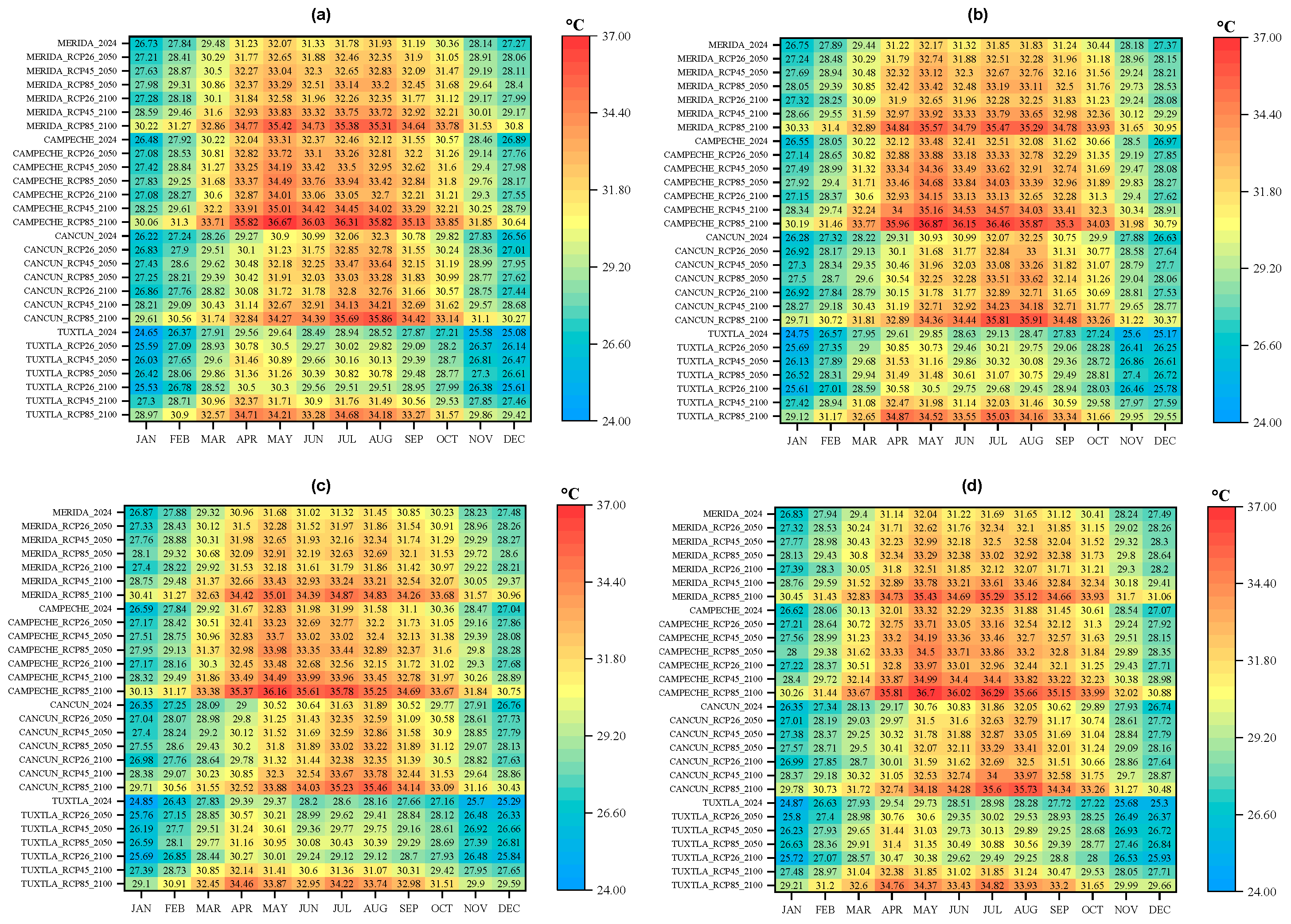 - Andrade-Velázquez, M.; Medrano-Pérez, O.R.; Montero-Martínez, M.J.; Alcudia-Aguilar, A. Regional Climate Change in Southeast Mexico-Yucatan Peninsula, Central America and the Caribbean. Appl. Sci. 2021, 11, 8284. [Google Scholar] [CrossRef]