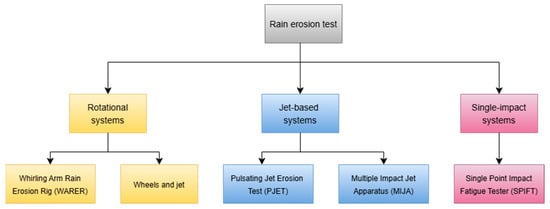 - Finnegan, W.; Bech, J.I.; Hasager, C.B.; Tobin, E.; Dyer, K.; Johansen, N.F.-J.; Katsivalis, I.; López, F.S.; Hamerton, I.; Blattert, H.; et al. Review on Available Technologies for Laboratory Erosion Testing; Technical Report; Technical University of Denmark (DTU): Kongens Lyngby, Denmark, 2022; Available online: https://iea-wind.org/wp-content/uploads/2022/12/IEA-WT46-WP4.1-report-Review-on-available-technologies-for-laboratory-erosion-testing.pdf (accessed on 19 August 2025).