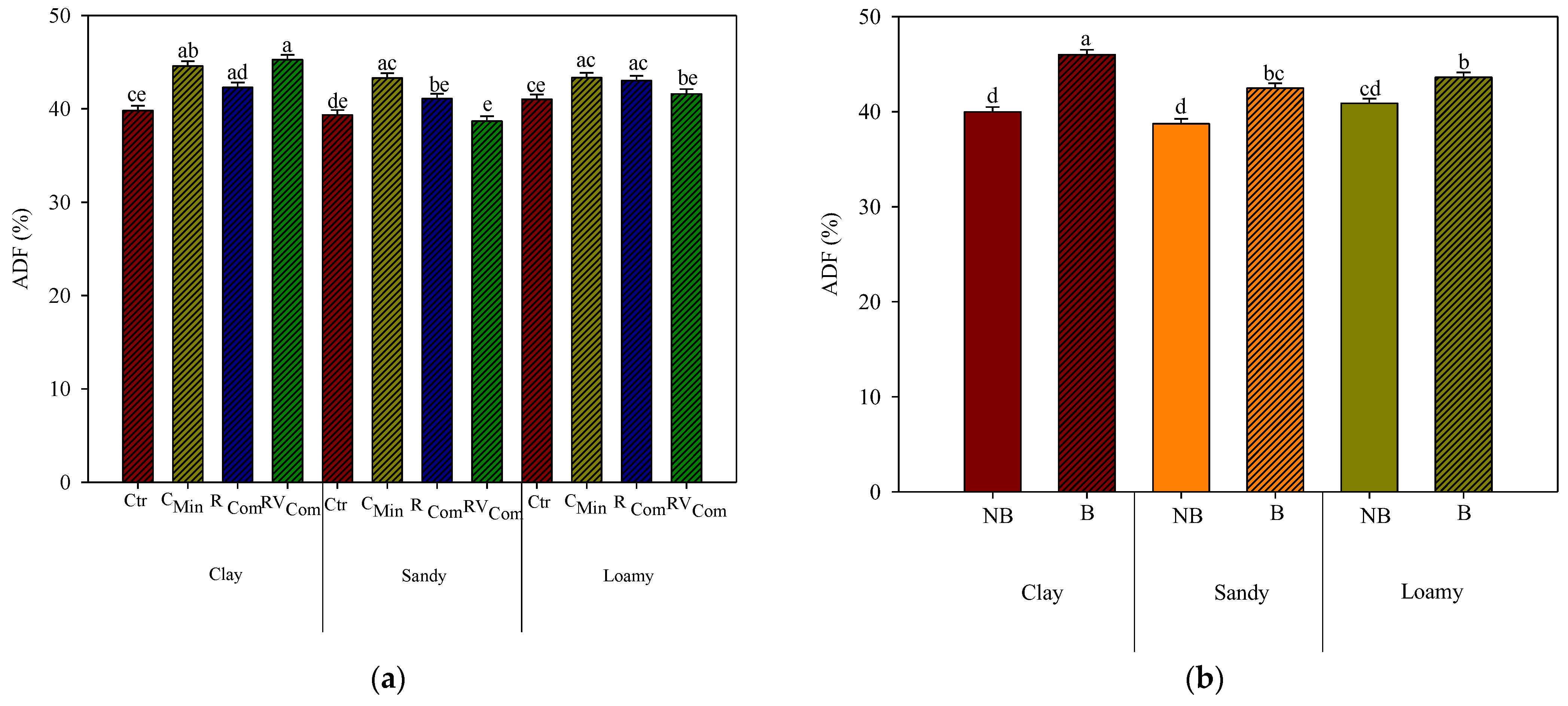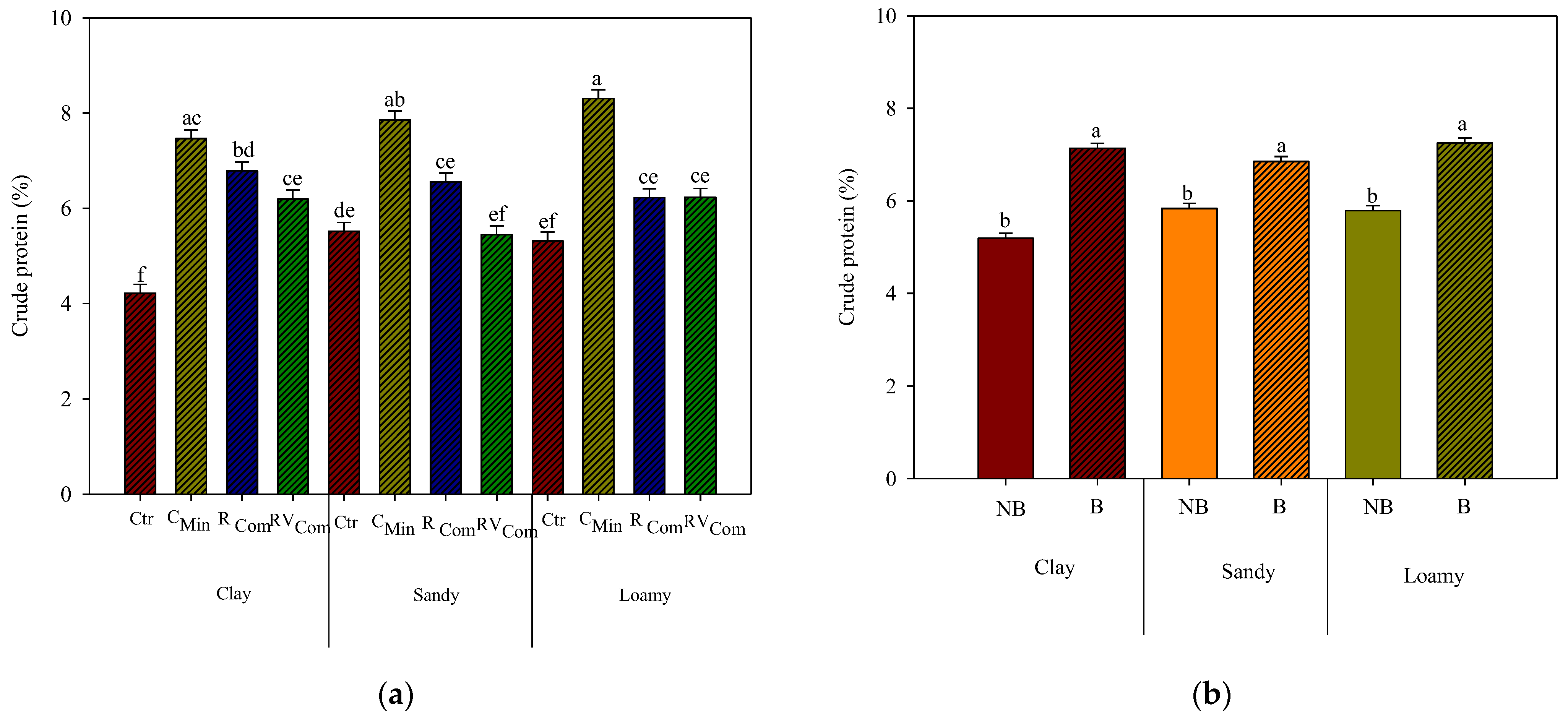 - Ahmed, W.; Ashraf, M.N.; Sanaullah, M.; Maqsood, M.A.; Waqas, M.A.; Rahman, S.U.; Hussain, S.; Ahmad, H.R.; Mustafa, A.; Minggang, X. Soil Organic Carbon and Nitrogen Mineralization Potential of Manures Regulated by Soil Microbial Activities in Contrasting Soil Textures. J. Soil. Sci. Plant Nutr. 2024, 24, 3056–3067. [Google Scholar] [CrossRef]