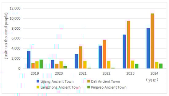 Tourist numbers in the four ancient cities from 2019 to 2024.