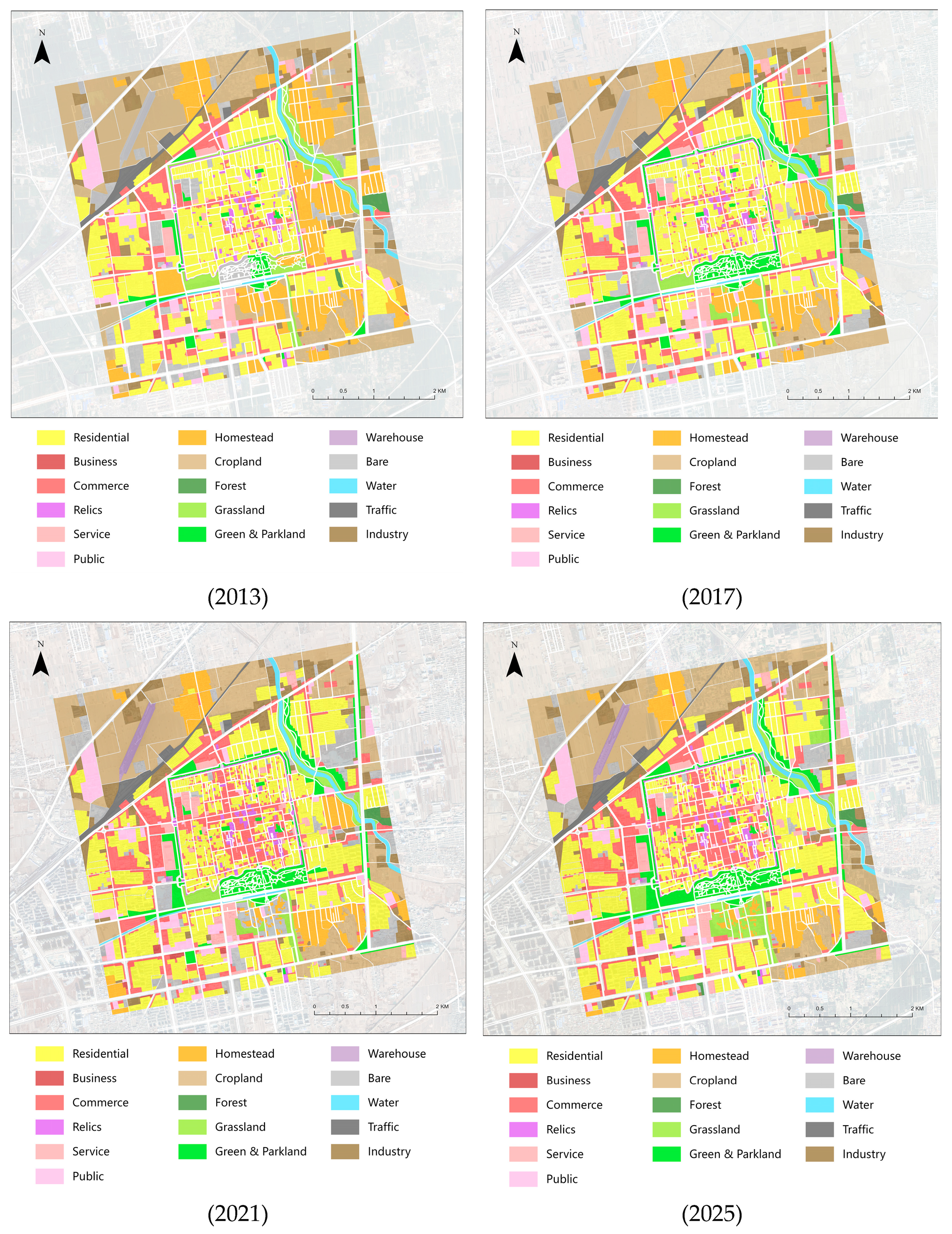 - Li, X.; Hou, W.; Liu, M.; Yu, Z. Traditional Thoughts and Modern Development of the Historical Urban Landscape in China: Lessons Learned from the Example of Pingyao Historical City. Land 2022, 11, 247. [Google Scholar] [CrossRef]