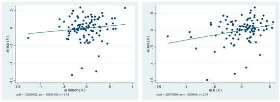 In the same vein, ref. [26] found that Fintech had a strongly positive influence on firms’ ESG performance, with the greatest impact occurring during the decline phase, followed by the maturity and growth phases. Green finance also enhances this influence, particularly in the growth phase. Furthermore, the influence of Fintech on ESG performance is greater in industries with a higher environmental impact. These findings highlight the importance of companies tailoring their Fintech-associated strategies according to their life cycle and industry characteristics in order to optimize their ESG performance. In addition, ref. [3] demonstrates that the adoption of financial technology encourages the development of environmentally friendly financial products and services, thereby facilitating the transition to a low-carbon economy. Based on a case study of Chinese listed companies from 2015 to 2022, the results reveal that financial technology significantly enhances their environmental, social and governance performance. These findings remain robust when regional and sectoral idiosyncrasies are controlled, thanks to the stringent methodology employed, which considers endogeneity. In addition, cross-border capital mobility enhances this positive impact. The financial technology effect operates through innovation in research and development, the attention given to research reports and ownership of funds. These results confirm the importance of promoting the development of financial technology in global innovation ecosystems to support company sustainability.