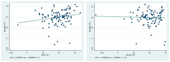 Table 4 summarizes the results of the variance inflation factors (VIF). The outcomes reported for Models (1)–(3) indicate negligible multicollinearity among the predictors. Across all specifications, VIF values are tightly clustered between 1.15 (EC) and 1.38 (FI), with a mean VIF of 1.31, while the corresponding tolerance values (1/VIF) range from 0.868 to 0.723. These figures lie comfortably within conventional benchmarks (e.g., VIF well below 5 and tolerance well above 0.20), suggesting that the explanatory variables (FI, TI, FINTECH, and EC) do not exhibit problematic overlaps in the information they provide.
