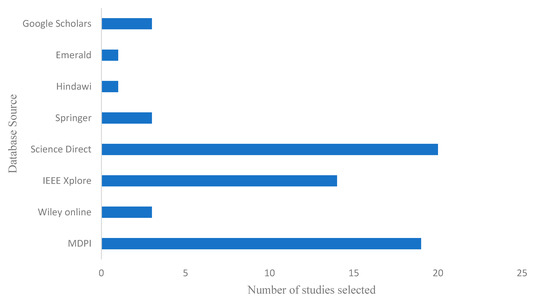 The search approach utilised the guidelines of [35] to generate the search string. Formulating an efficient search strategy is essential for succeeding in the succeeding phases. A search strategy is created to commence the systematic literature review by querying relevant electronic databases to gather suitable material. The comprehensive literature search procedure is the primary element that differentiates a systematic literature review from a traditional review. This study conducted an automatic search in two distinct periods. The initial phase involved the definition of keywords and the semantics of the research. In the subsequent phase, digital libraries and journals designated for paper retrieval are identified. Consequently, search terms have been formulated through the following procedures [37]: derivation of principal terms from research inquiries, identification of alternative spellings and synonyms for principal terms, extraction of keywords from pertinent literature, application of the Boolean OR to incorporate substitute spellings and synonyms, and utilisation of the Boolean AND to connect the key terms. The constructed search string and keywords for the search procedure are presented in Table 2. The search string comprises two components: Q1 and Q2 (refer to Table 2). The keyword was queried, concentrating on the title and abstract to obtain a substantial number of publications. Consequently, eight prominent academic databases, including IEEE Xplore, Science Direct, Springer, Hindawi, Emerald, Wiley Online, MDPI, and Google Scholar, were used to identify relevant papers. Table 3 illustrates the comprehensive list of the queried database together with its outcomes. The keywords (and their synonyms) derived from the research questions, utilising the aforementioned methods, have been employed in this evaluation with minor modifications suitable for diverse libraries.