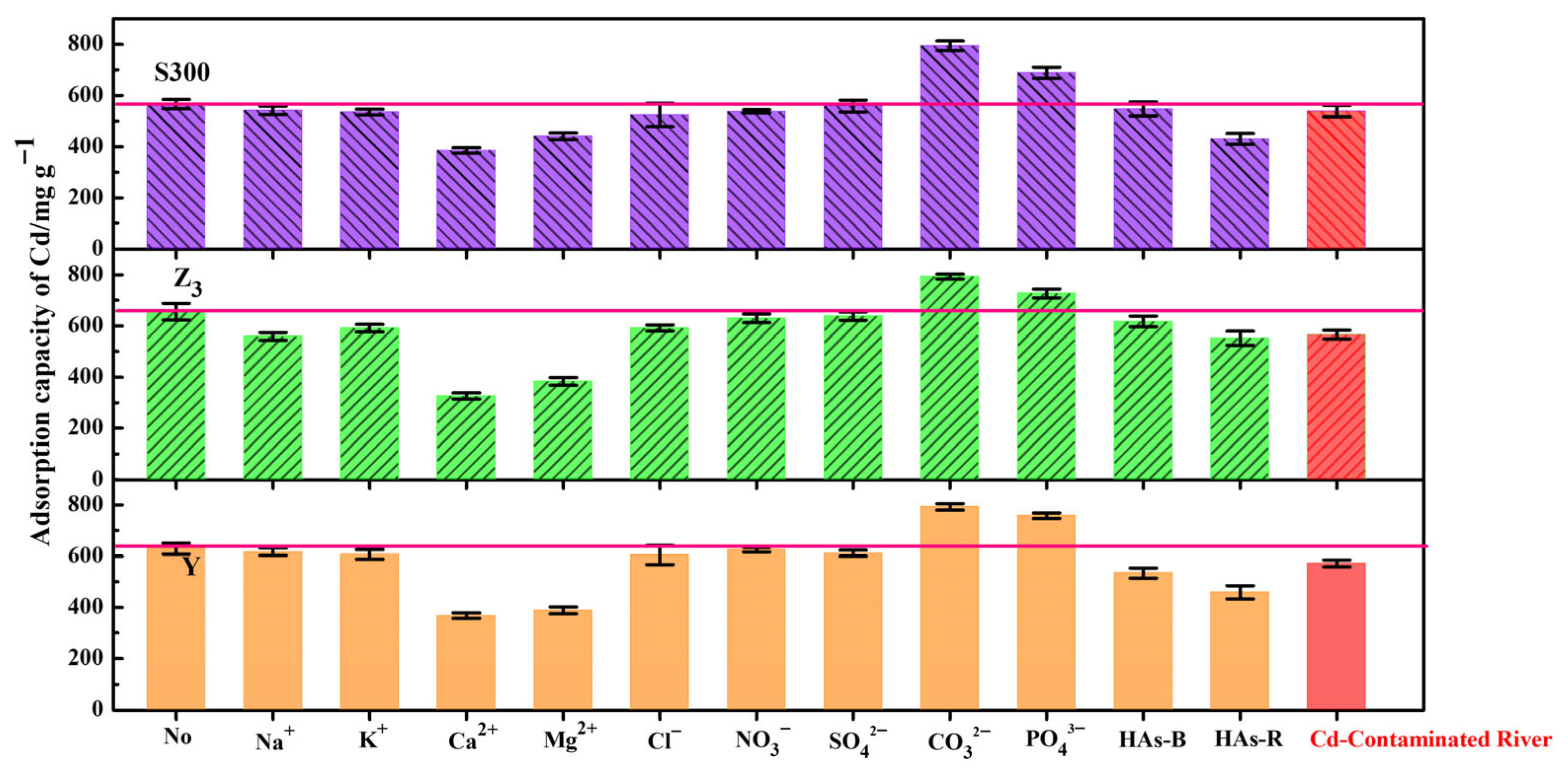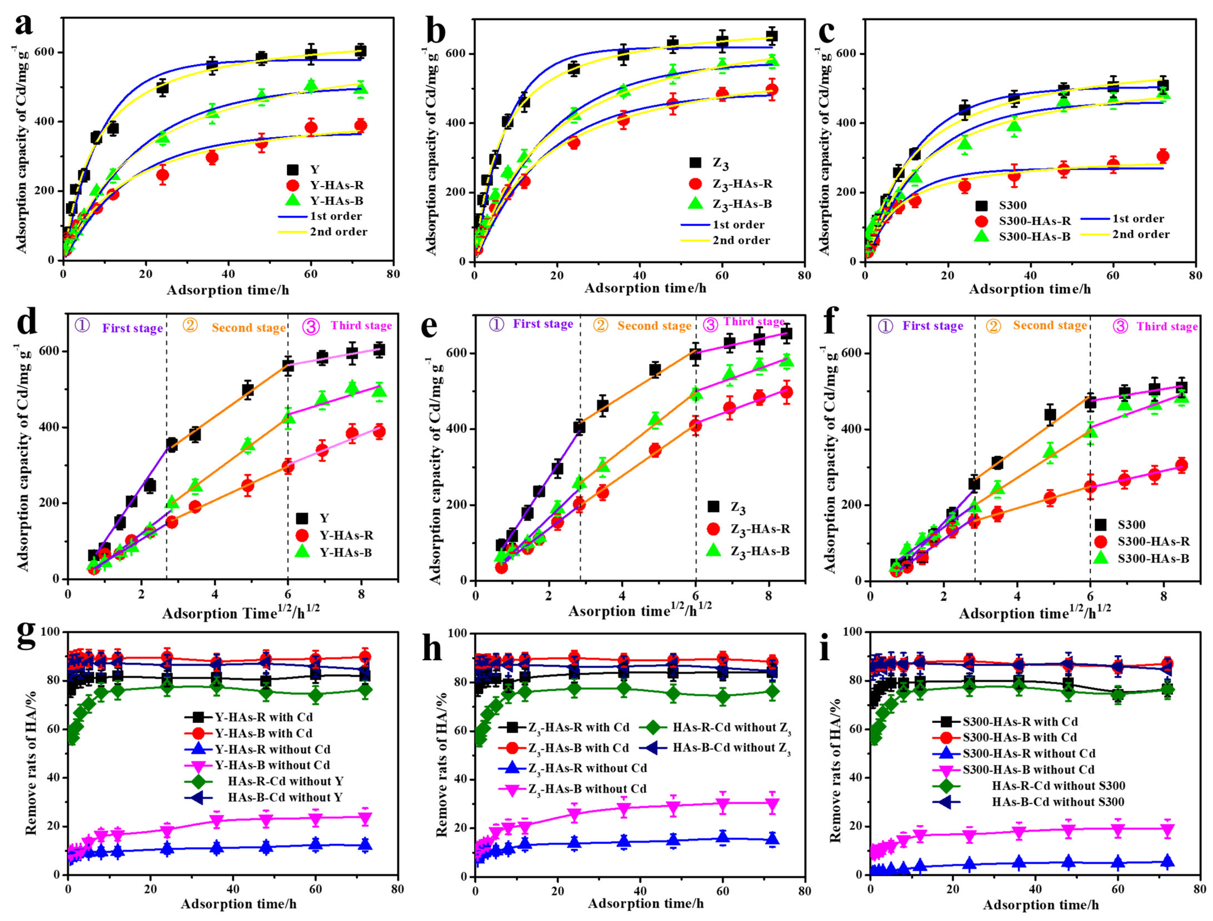 3.2. Effects of HAs on the Adsorption of Cd(II) by the Cuttlebone-Derived Samples