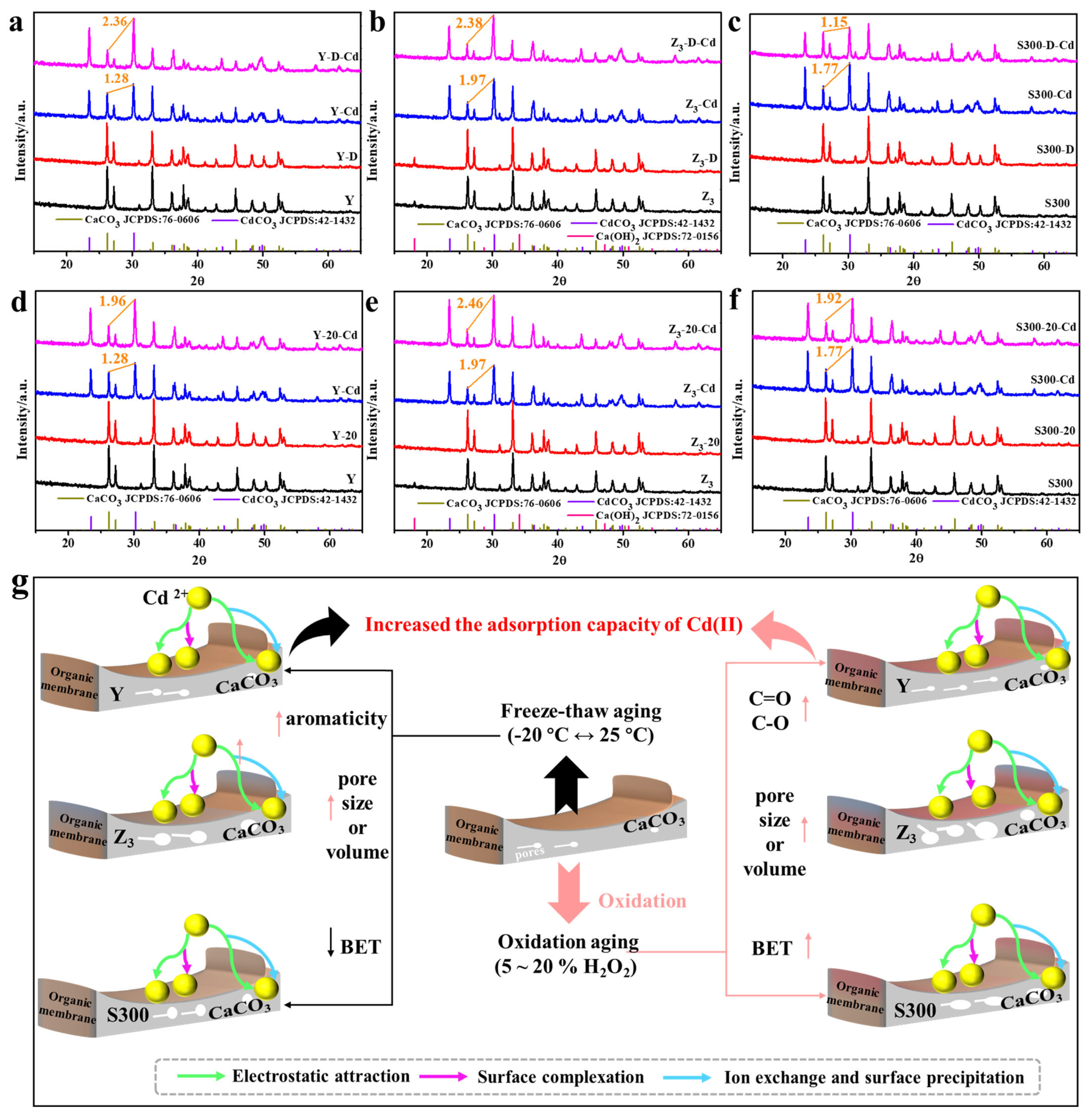 3.3.2. Adsorption Mechanism of Cd(II) by the Cuttlebone-Derived Samples After Freeze–Thaw and Oxidative Aging
