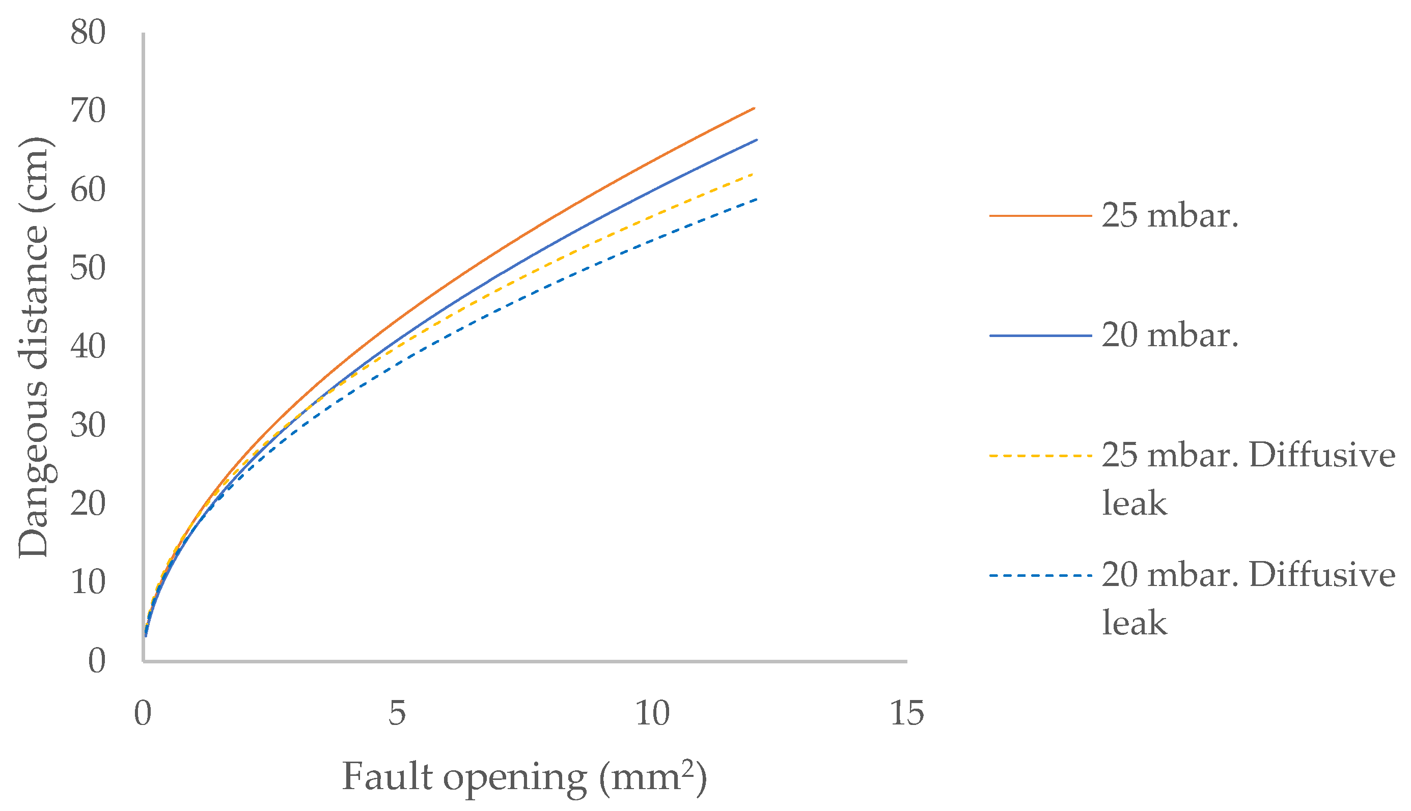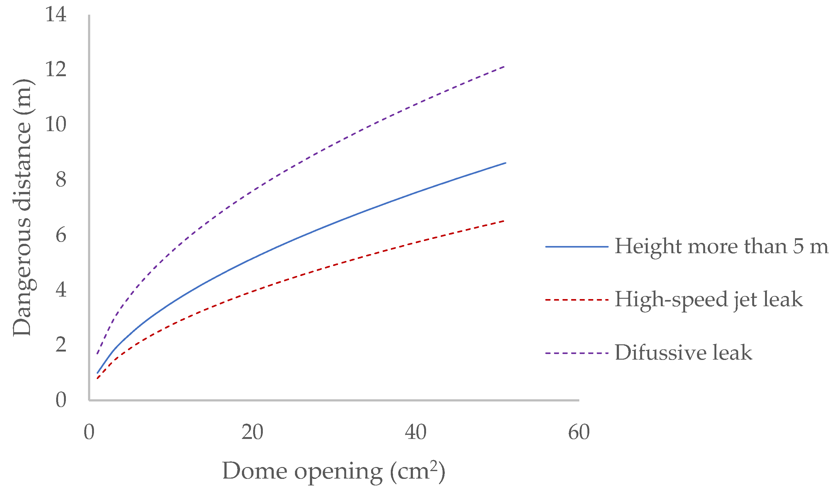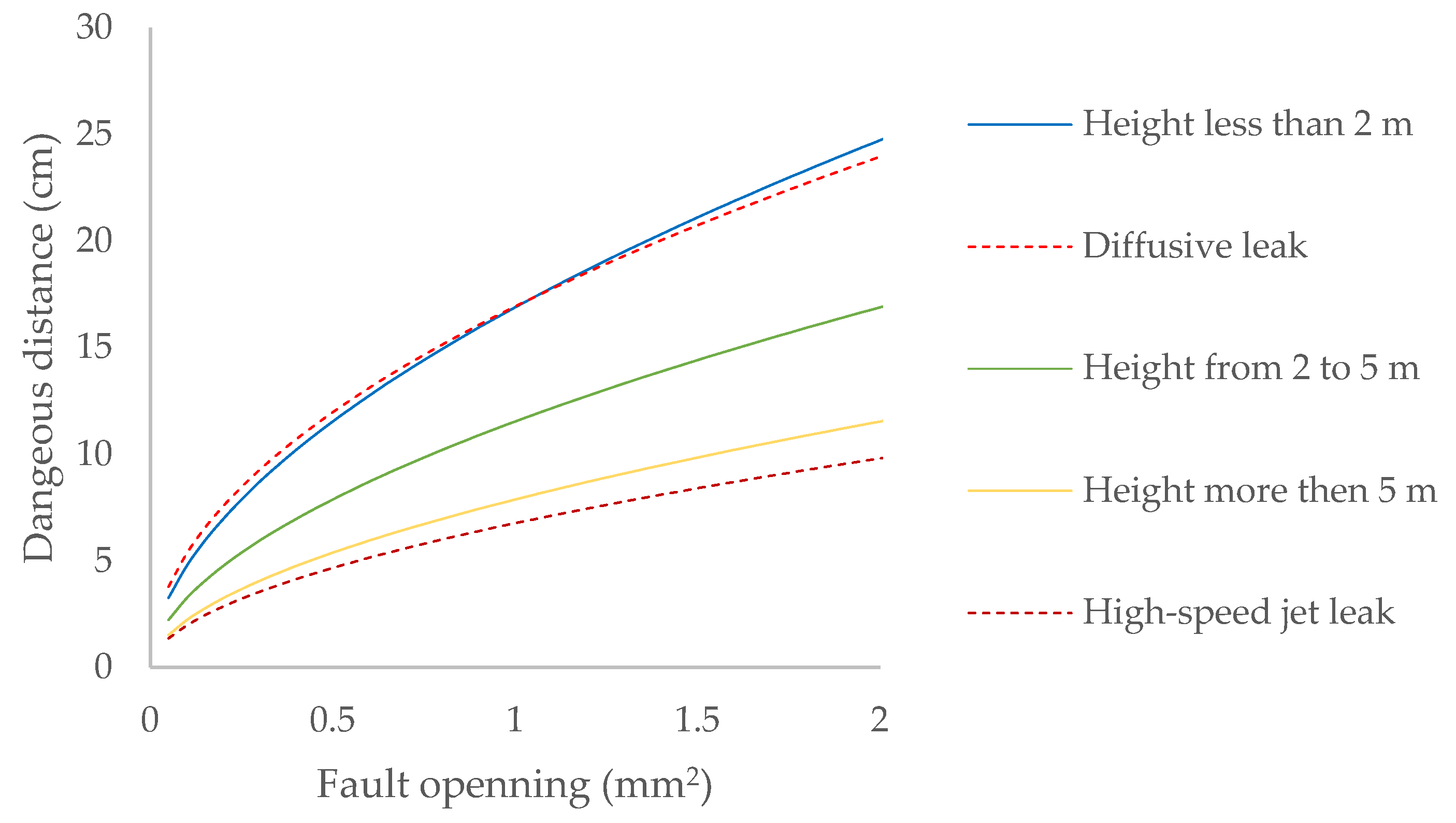 | Location of the Leak: Height Above Ground Level | Aperture Size (mm2) | Dangerous Distance (cm) | |||