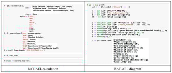 Figure 6 illustrates the BAT-AEL calculation procedure, along with a comparison between the Excel-based manual and Python-based automated methods. An example of Python coding for BAT-AEL calculation is presented in