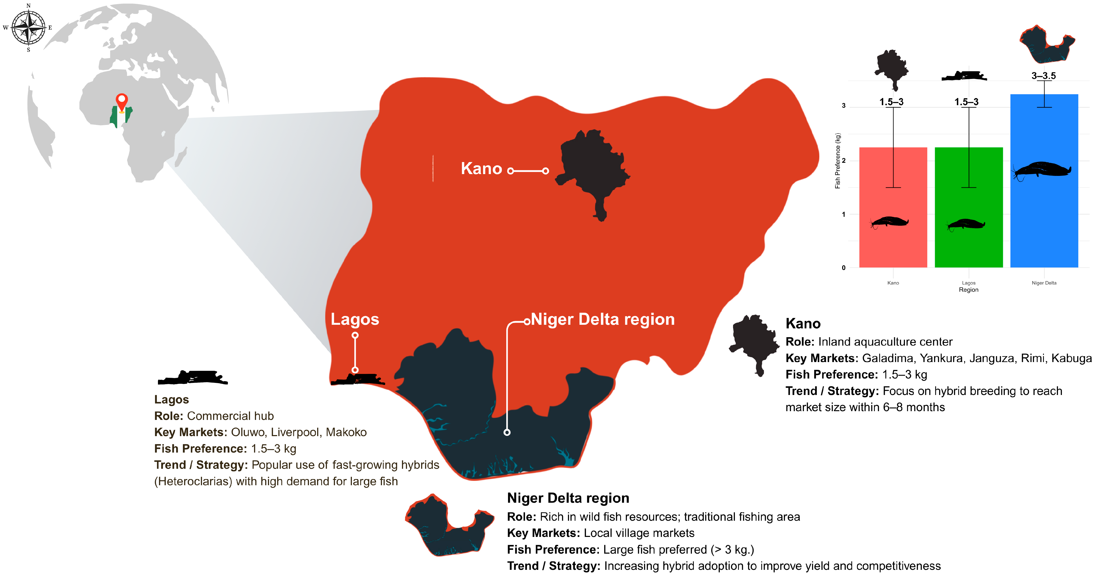 - Liverpool-Tasie, L.S.O.; Wineman, A.; Amadi, M.U.; Gona, A.; Emenekwe, C.C.; Fang, M.; Belton, B. Rapid transformation in aquatic food value chains in three Nigerian states. Front. Aquacult. 2024, 3, 1302100. [Google Scholar] [CrossRef]