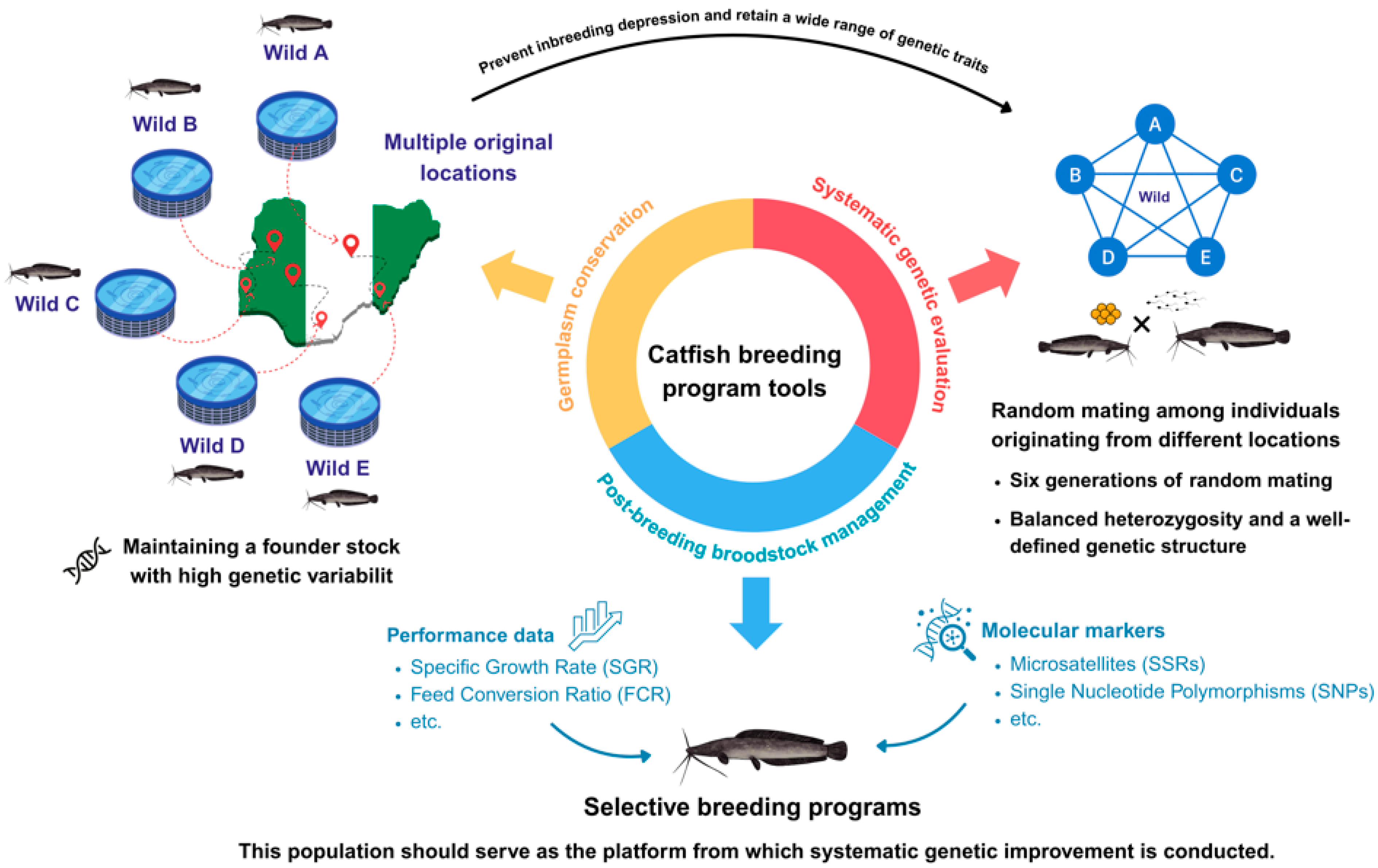 - Isa, S.I. Development of Genetic Improvement in the African Catfish (Clarias gariepinus, Burchell, 1822). 2019. Available online: http://hdl.handle.net/1893/29986 (accessed on 18 August 2025).