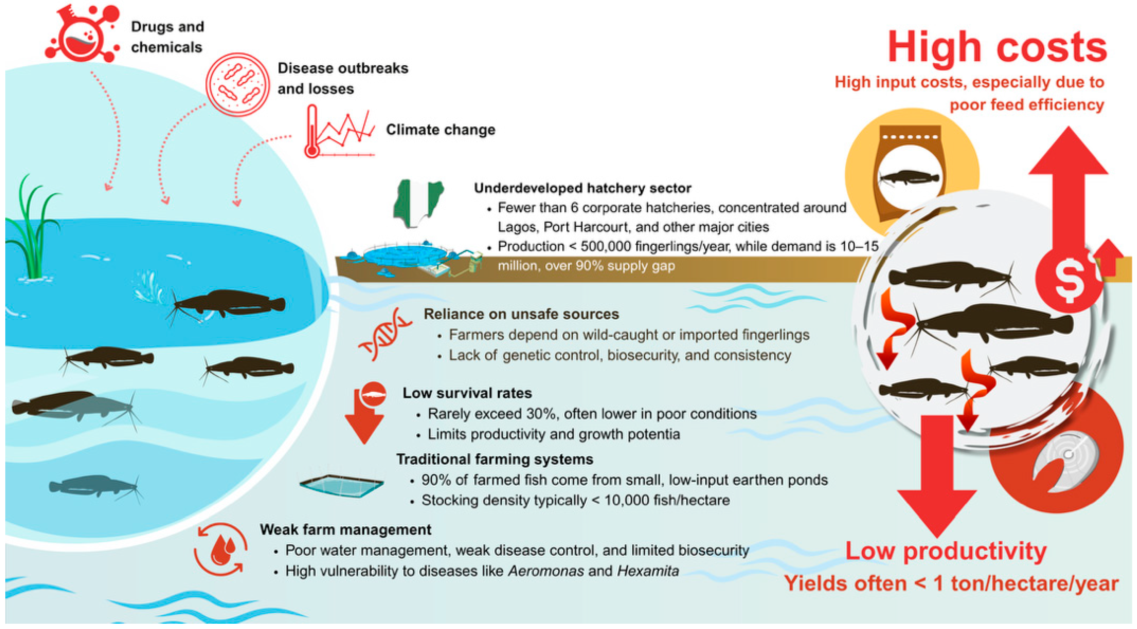Srikulnath, K.; Panthum, T.; Singchat, W.; Chaiyes, A.; Prasanpan, J.; Uno, U.; Edem, U.; Obidiegwu, J.E. Addressing Catfish (Clarias spp.) Supply Gap in Nigeria: A Perspective on Strategies for Sustainable Aquaculture Growth. Sustainability 2025, 17, 9645. https://doi.org/10.3390/su17219645