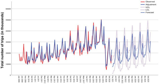 During this ten-year projection, an anomaly shared by the three series was identified in January 2020, which was incorporated into the models using an additive method. Evaluating the explanatory power of the models, the R