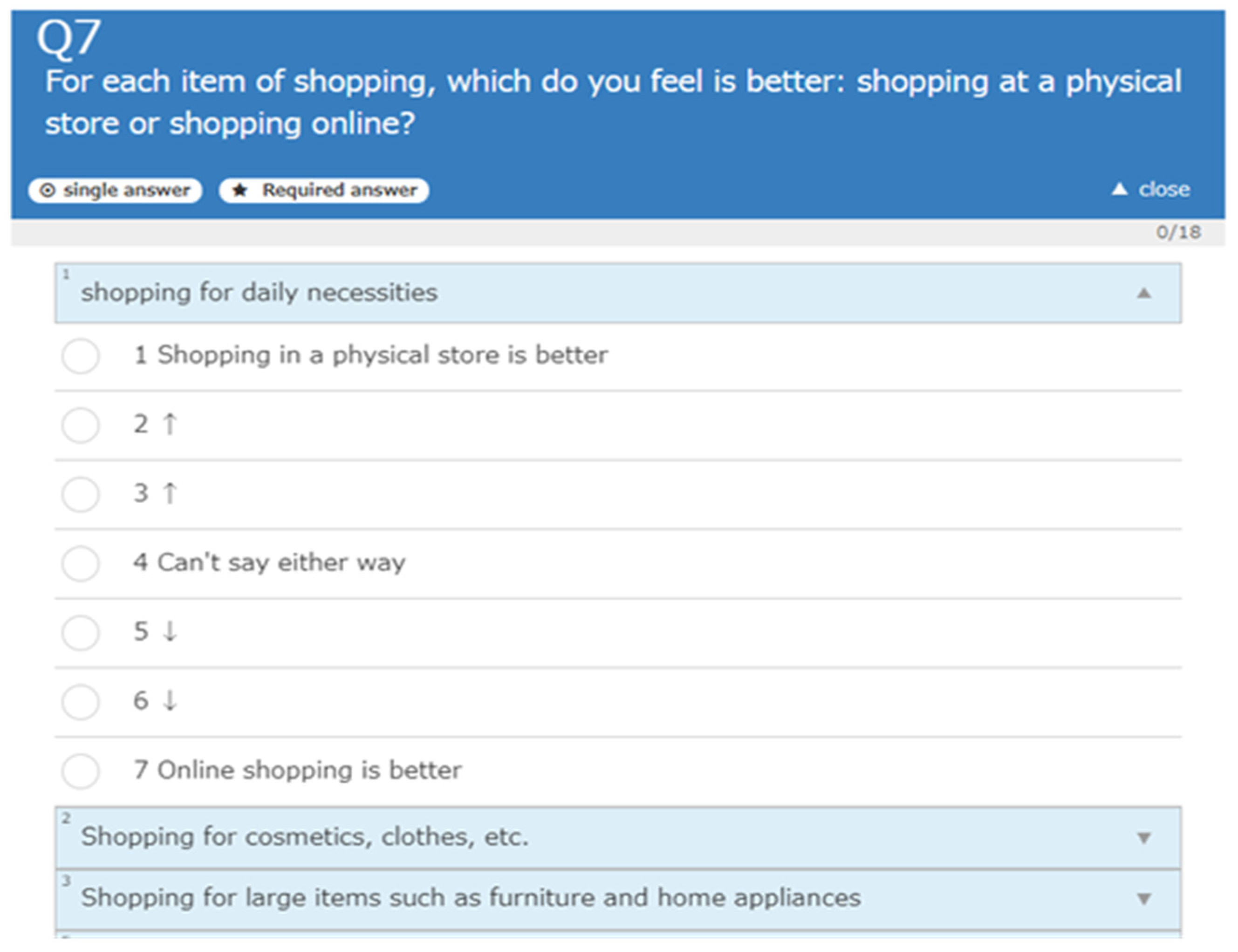 Shopping service-related survey question.