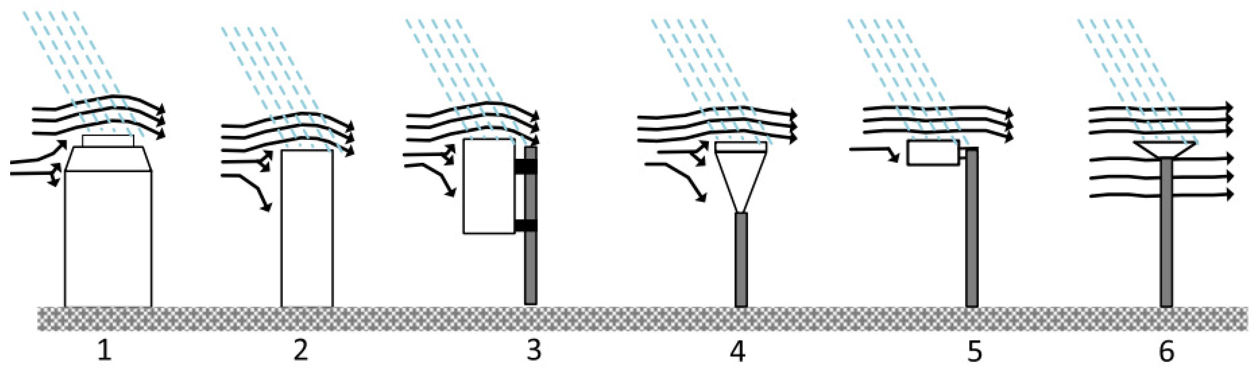 46]. The overflow of gauges, whether manual or non-recording, remains an issue during extreme events, necessitating frequent monitoring and/or larger-capacity containers for weighing rain gauges [