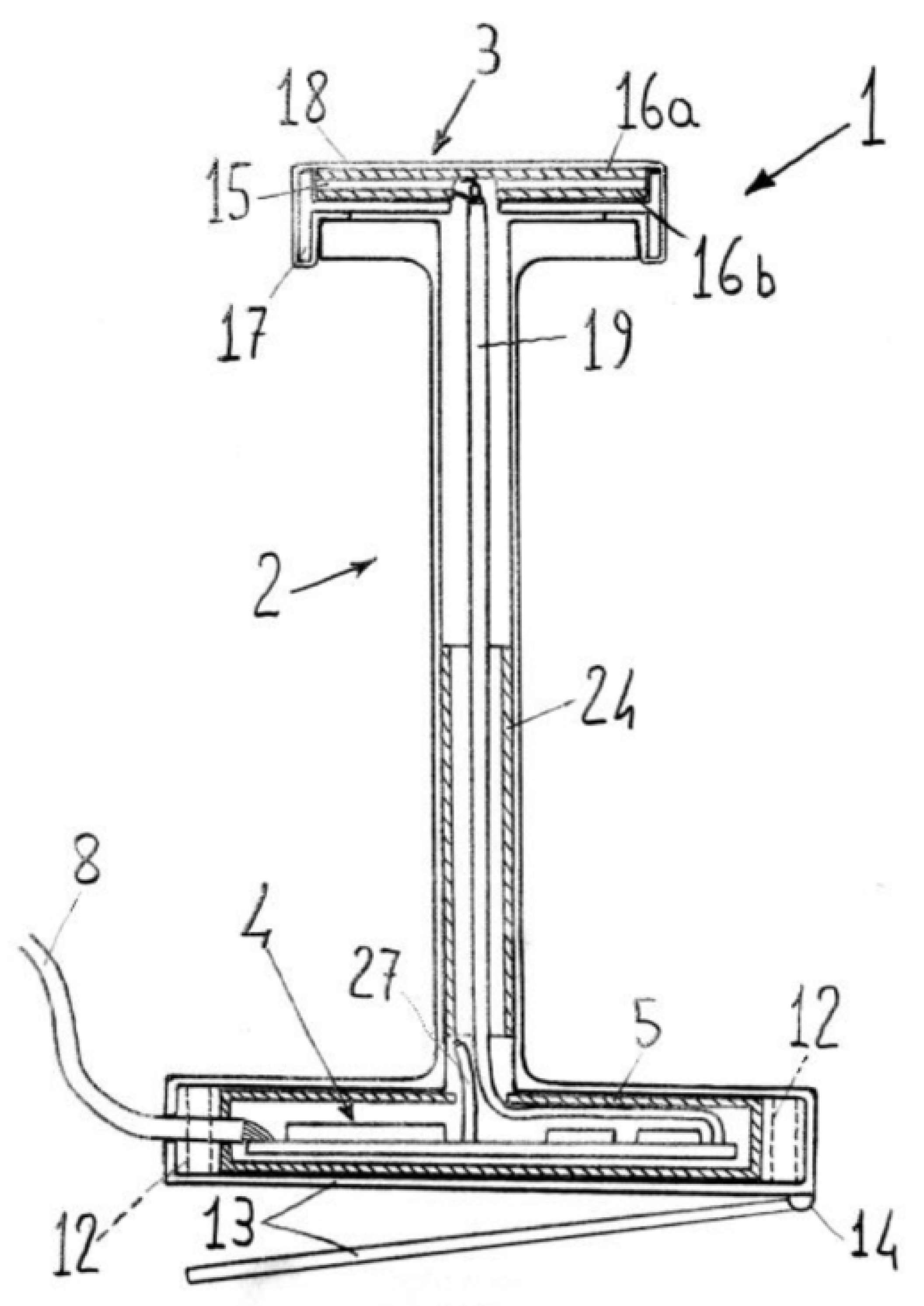Figure 2) designed to overcome the evaporation issue, utilising a novel type of rain gauge that does not collect rainwater and has high sensitivity, a large range, and a high sample rate of rain intensity. The pluviometer is composed of two discs having different diameters joined by a rod made of an electrically insulating material. The distance between the two disks must be at least 10 cm to avoid splash drops, whereas the disk, positioned at the top with its axis parallel to the vertical axis, contains an electric capacitor that acts as the sensor, which is a few cm