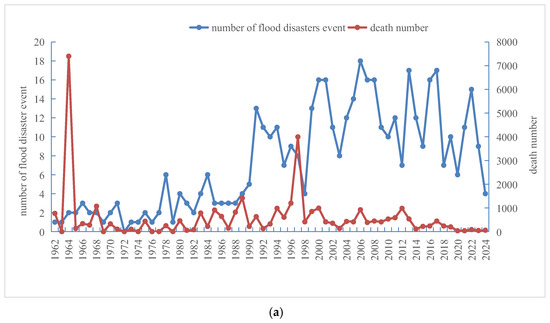 3.1. Spatiotemporal Trends of Flood Disasters (1962–2024)
