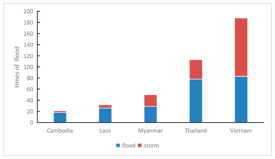 - Although Cambodia, Laos, Myanmar, Thailand, and Vietnam all lie within the Mekong River Basin, the causes of floods differ across countries due to variations in geography, regional conditions, and climate. In Vietnam, floods are primarily caused by storms, followed by riverine flooding. In Myanmar and Thailand, riverine floods are dominant, with storms contributing significantly. Mirza (2003) observed analogous hydrometeorological drivers in Bangladesh’s extreme floods, underscoring the role of regional climate patterns in flood generation [49]. In Laos and Cambodia, riverine floods are also the main driver, with storms accounting for 10~20% of events.