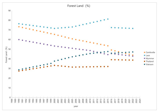 Forest cover proportions in Mekong Basin countries (1962–2022).