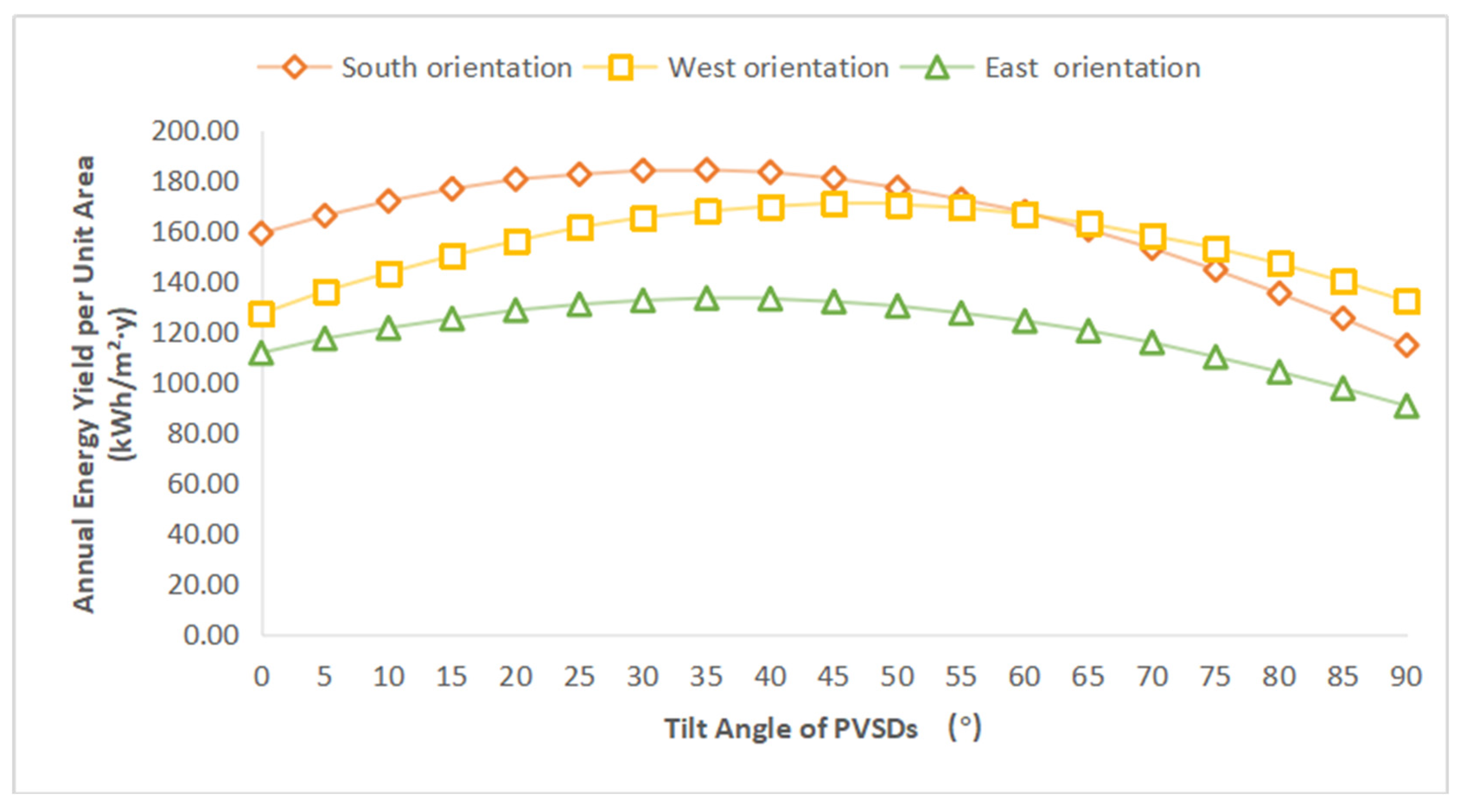 | Tilt Angle of PVSDs (θ) | ° | fixed value | __ | 30° for the south facade, 35° for the east facade, and 45° for the west facade | |