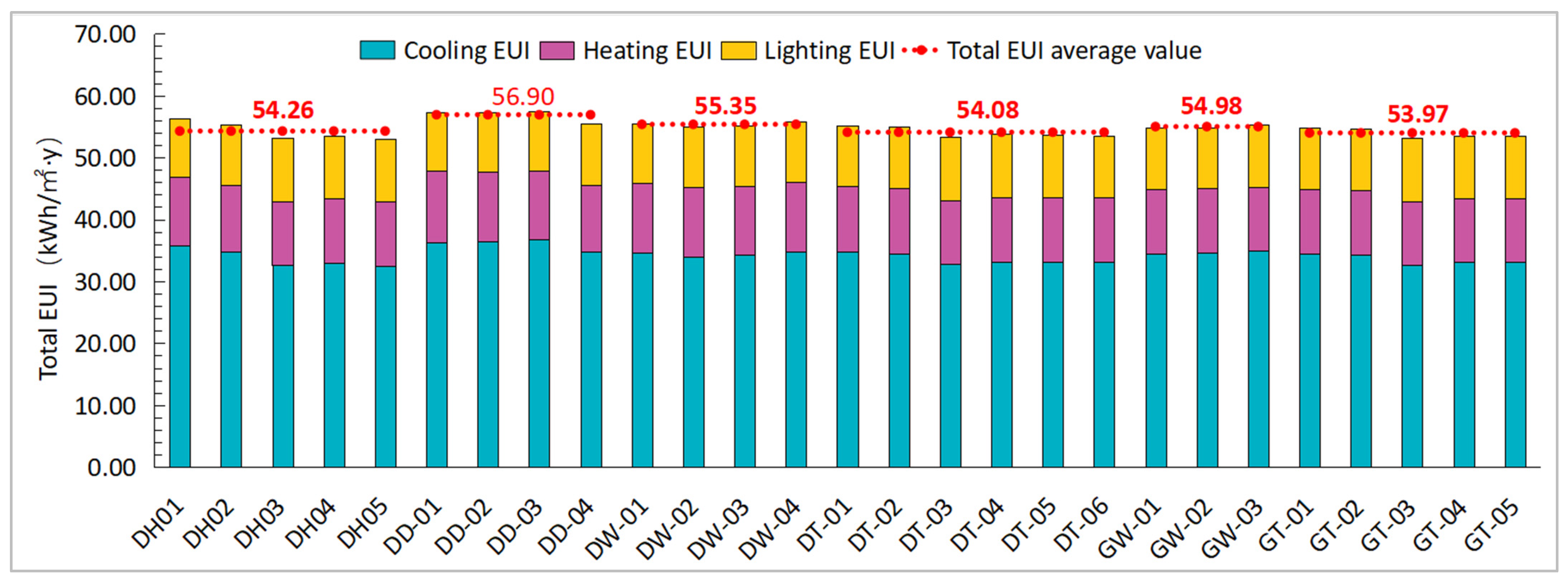 - High-Rise Perimeter blocks demonstrate optimal energy efficiency with an EUI of 53.97 kWh/m2·y, achieving 5.4% lower energy use compared to Multi-Story Towers.