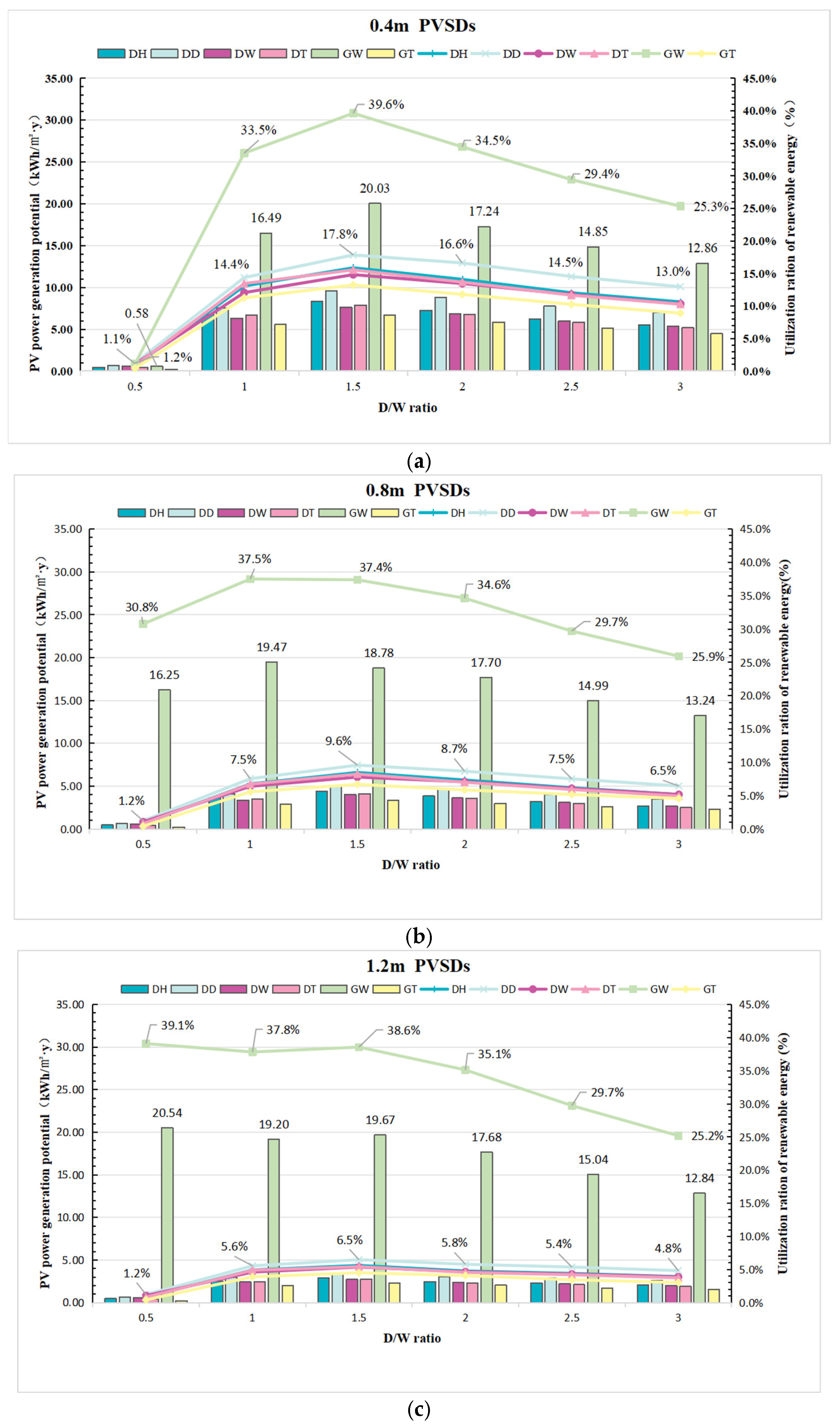 - The PVSDs with a width of 0.4 m and a D/W ratio of 1.5 represent the most effective configuration, providing 18.05% average integrated energy savings and achieving peak PV generation efficiency at 40.8% URRE, outperforming wider alternatives by 41%.