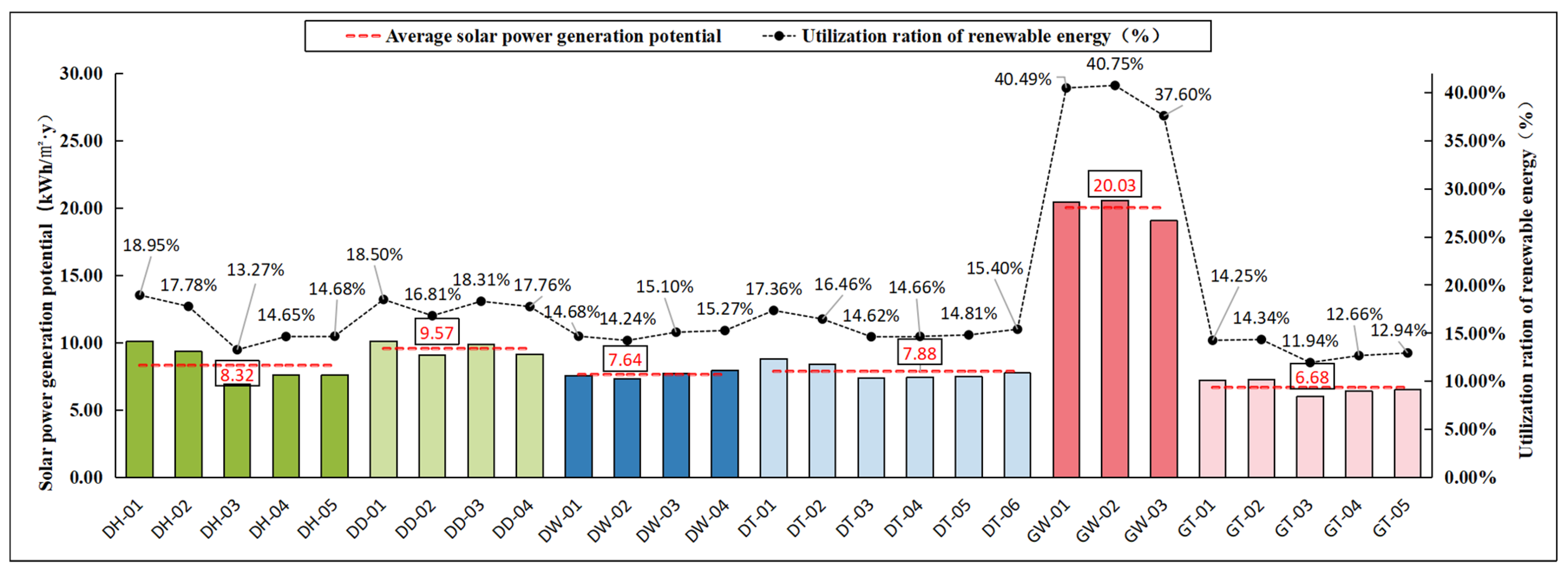 - Liu, K.; Xu, X.; Zhang, R.; Kong, L.; Wang, W.; Deng, W. Impact of urban form on building energy consumption and solar energy potential: A case study of residential blocks in Jianhu, China. Energy Build. 2023, 280, 112727. [Google Scholar] [CrossRef]