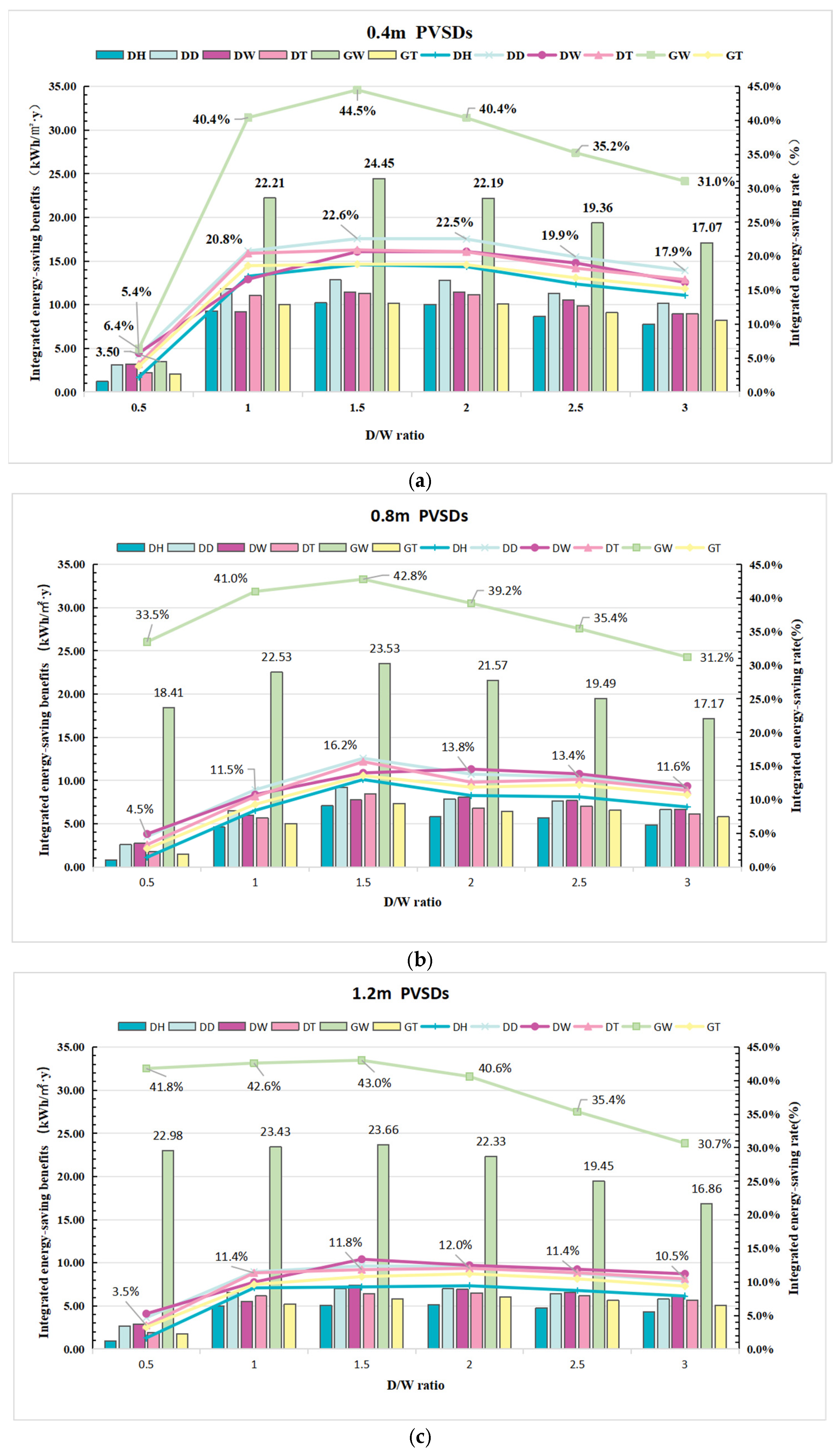 3.2.1. The Impact of PVSDs on Energy-Saving Benefits from PV Shading