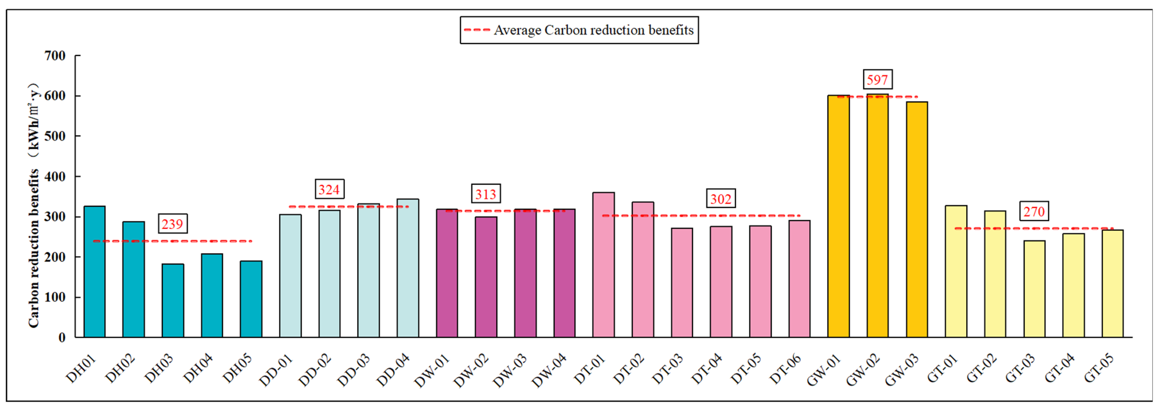 3.4.1. The Impact of PVSDs on Building-Integrated Energy-Saving Benefits
