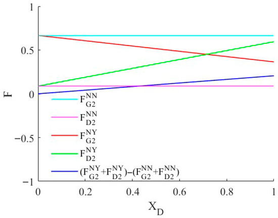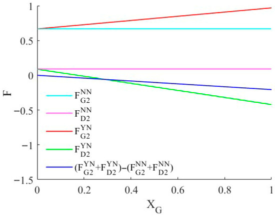 Substituting Equations (33)–(36) into Equations (31) and (32), the optimal enterprise profits of fresh product enterprise G and fresh product enterprise D in the second stage can be obtained: