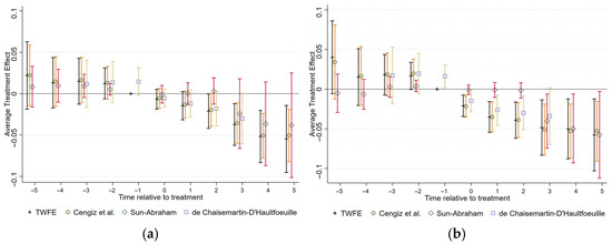 - Sun, L.; Abraham, S. Estimating dynamic treatment effects in event studies with heterogeneous treatment effects. J. Econom. 2021, 225, 175–199. [Google Scholar] [CrossRef]