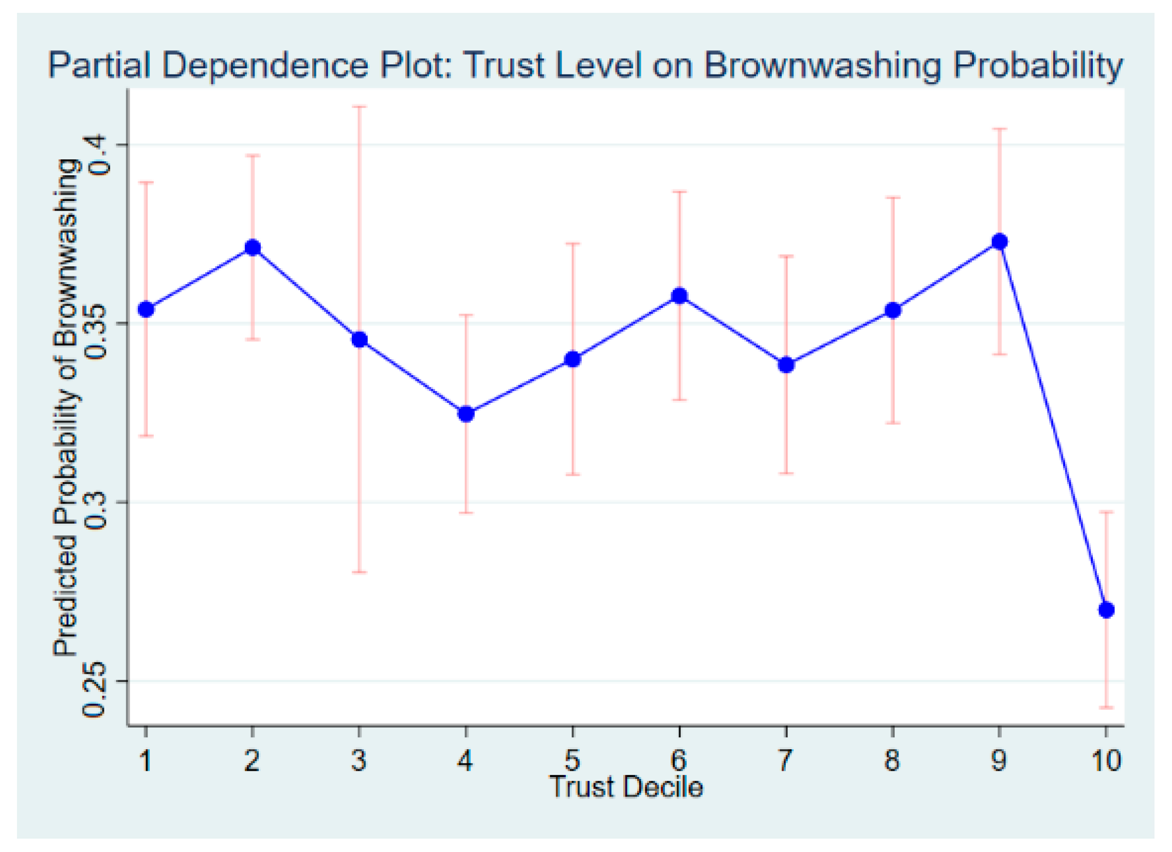 | Trust Decile | Predicted Probability | Difference from Baseline | Significance |