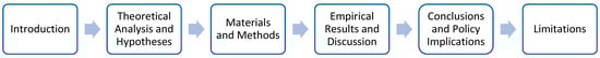 As shown in Figure 1, this study proceeds in a logical sequence from theoretical conception to empirical validation. The Introduction outlines the research background, significance, and objectives. Section 2 develops the theoretical framework and formulates research hypotheses grounded in existing literature. Section 3 describes the data sources, defines the variables, and specifies the econometric models. Section 4 presents and interprets the empirical results, linking them to theoretical insights and policy implications. Section 5 concludes the paper by summarizing the main findings and proposing practical recommendations for agricultural development, while Section 6 discusses the study’s limitations and future research directions.