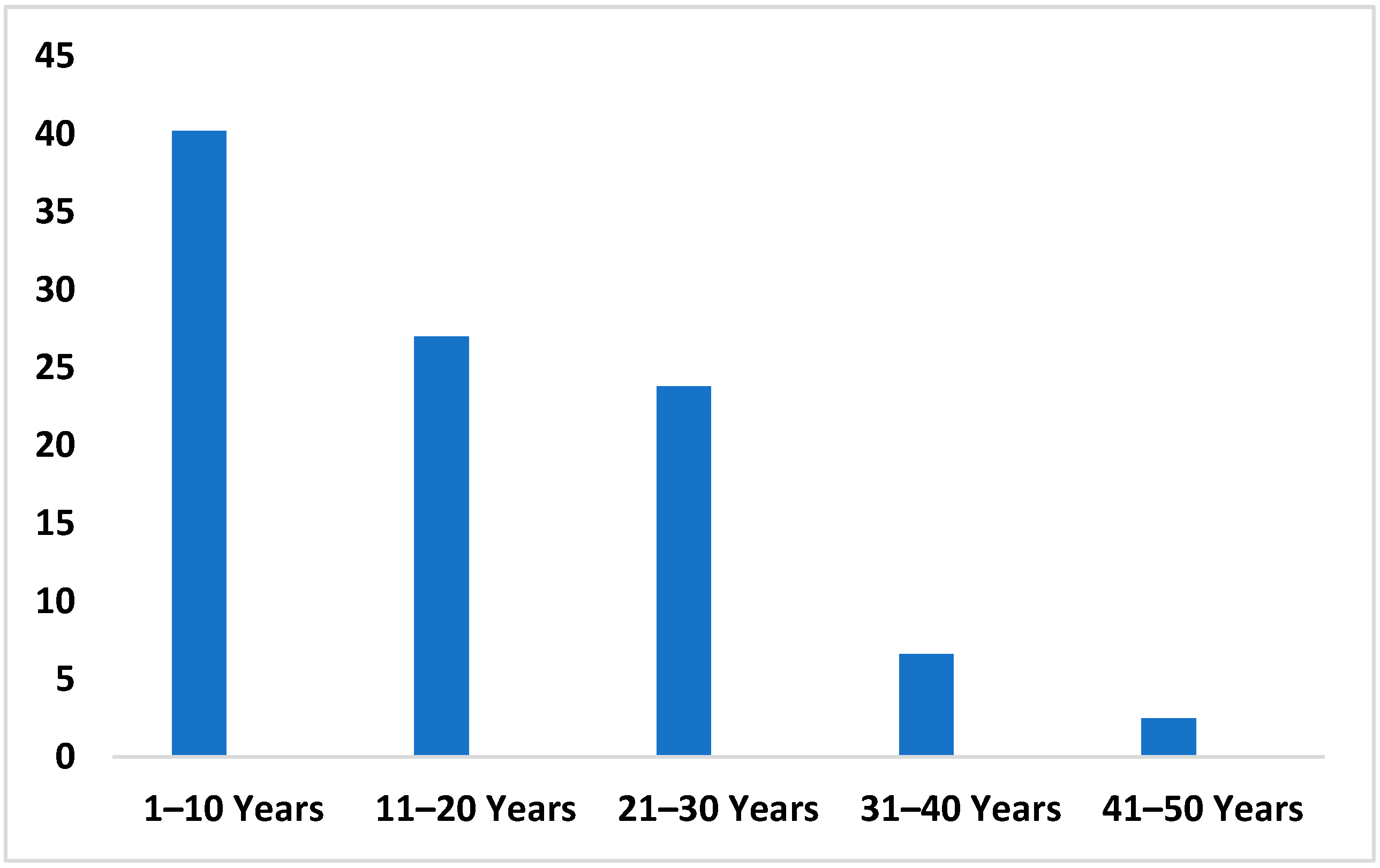| Age Group (Years) | 18–30 31–45 46–60 60+ | 61.9% 70.3% 55.6% 40.0% | Chi-square (χ2 = 8.21) | 0.042 | Mechanization adoption is the highest among middle-aged farmers [7,28,31,32,33,34,35,36,37,38,39,40,41,42,43]. |
