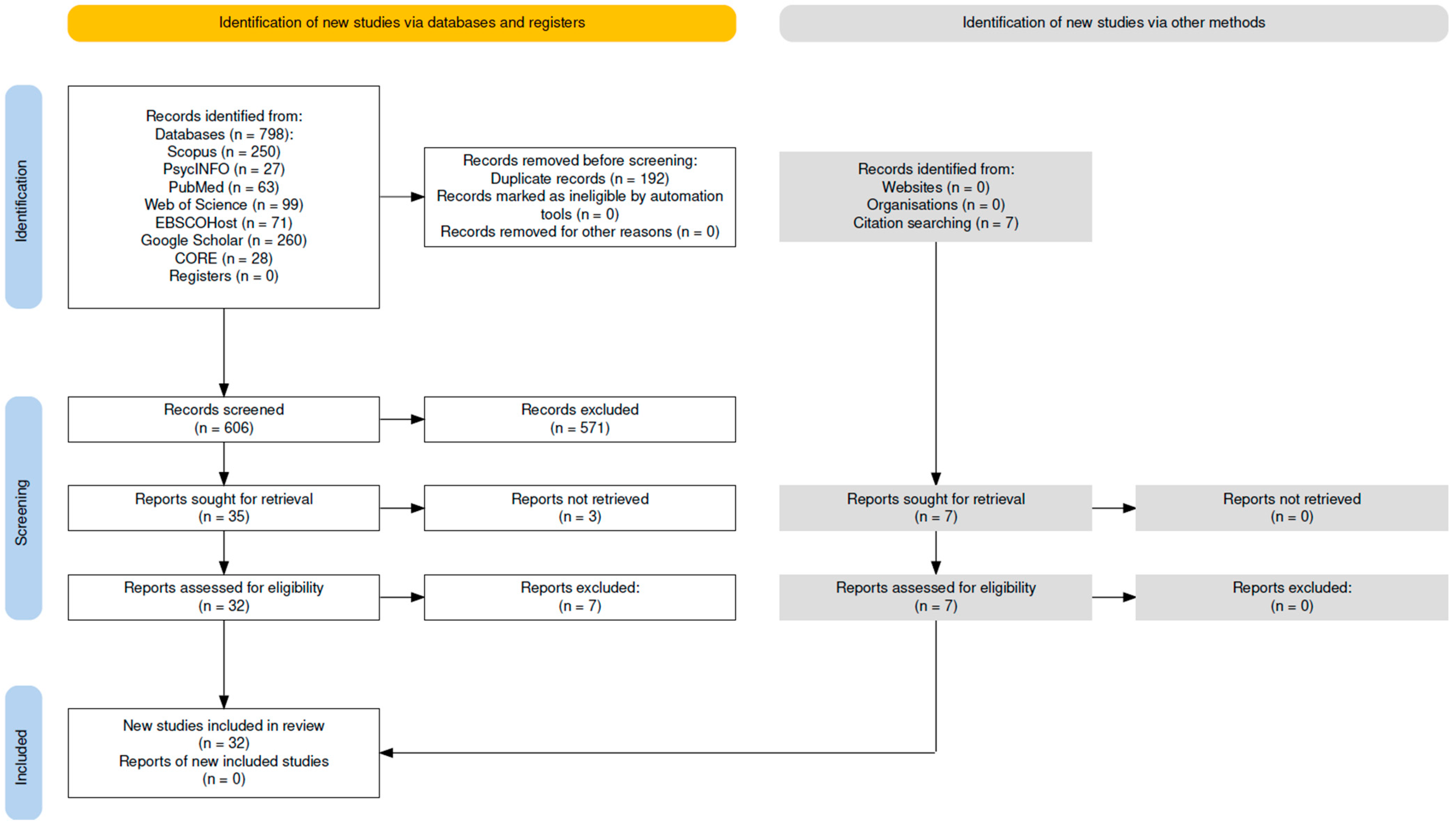 - Page, M.J.; McKenzie, J.E.; Bossuyt, P.M.; Boutron, I.; Hoffmann, T.C.; Shamseer, L.; Tetzlaff, J.M.; Akl, E.A.; Brennan, S.E.; Chou, R.; et al. The PRISMA 2020 statement: An updated guideline for reporting systematic reviews. BMJ 2021, 372, n71. [Google Scholar] [CrossRef]