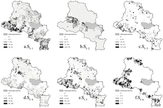 From a spatial perspective, households in to are relatively more concentrated in areas with abundant arable land resources or within the plains, compared with other clusters, whereas the distributions of to broadly correspond to the overall settlement pattern of poor households in the study area.