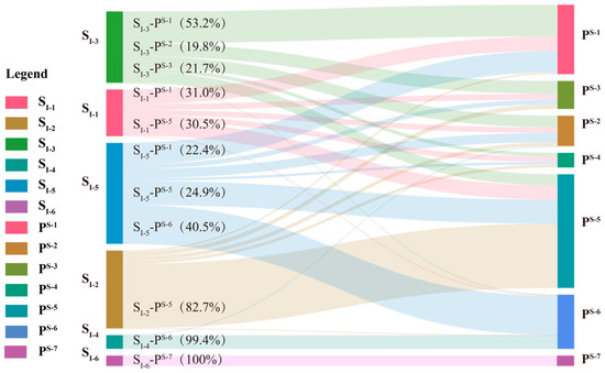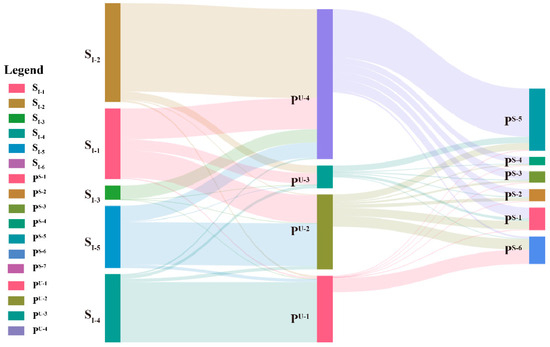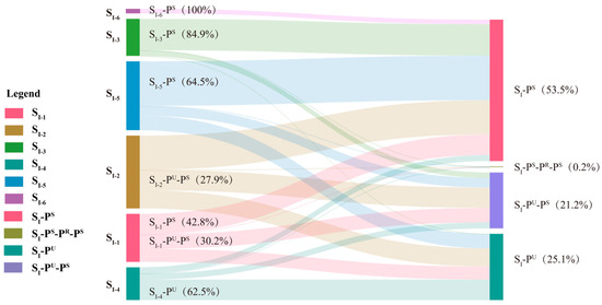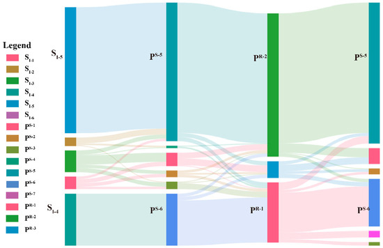 To provide an intuitive representation of path transitions, this study employs the Sankey Diagram as the primary visualization tool to depict the flows and proportions of transitions across different states. On the left side of the diagram, the initial state categories of households at the time of their inclusion in the poverty reduction monitoring system are displayed, while the subsequent process types are shown sequentially from left to right. The width of each flow line directly reflects the magnitude of transitions between categories, thereby revealing the dominant trends through which households move from their initial states into different processes. Building on this overall visualization of transition patterns, we further select several representative paths and conduct spatial distribution analyses. This approach allows for a more detailed deconstruction of household poverty reduction and development path features, as well as a deeper understanding of their spatial differentiation.