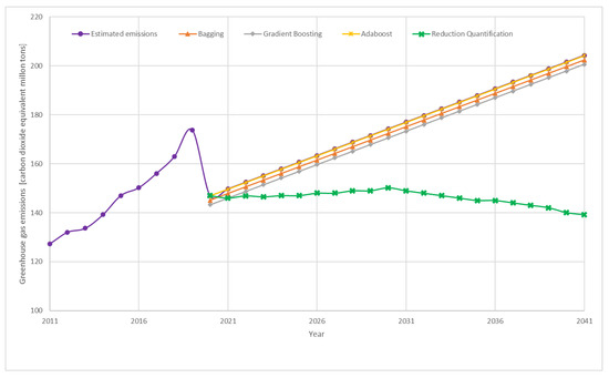 - Rahman, M.M.; Shafiullah, M.; Alam, M.S.; Rahman, M.S.; Alsanad, M.A.; Islam, M.M.; Islam, M.K.; Rahman, S.M. Decision Tree-Based Ensemble Model for Predicting National Greenhouse Gas Emissions in Saudi Arabia. Appl. Sci. 2023, 13, 3832. [Google Scholar] [CrossRef]
